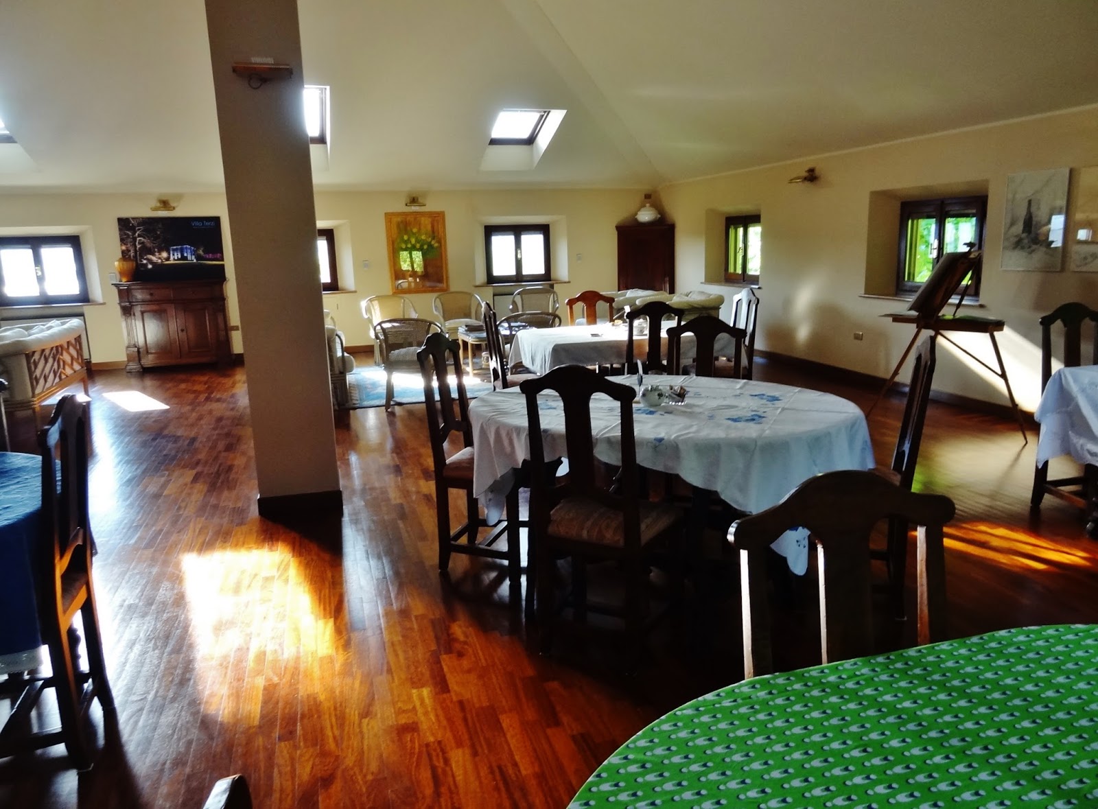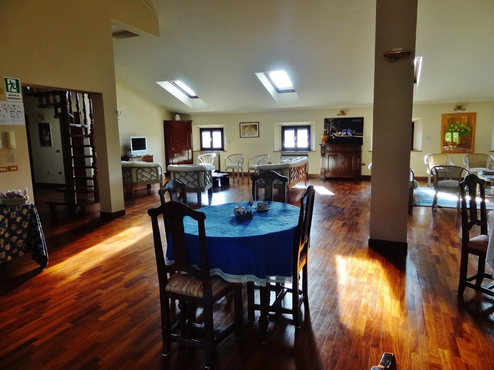 Villa Terzi esta ubicada a unos 11 km de Parma, en la localidad de Sórbolo. Es una casa de campo, muy grande, con habitaciones muy amplias y limpias. Conseguimos un precio de 117 euros por dos noches con desayuno incluido. El desayuno se realiza en la planta ático de la casa, totalmente diáfana. Un buffet correcto, sin grandes alardes.