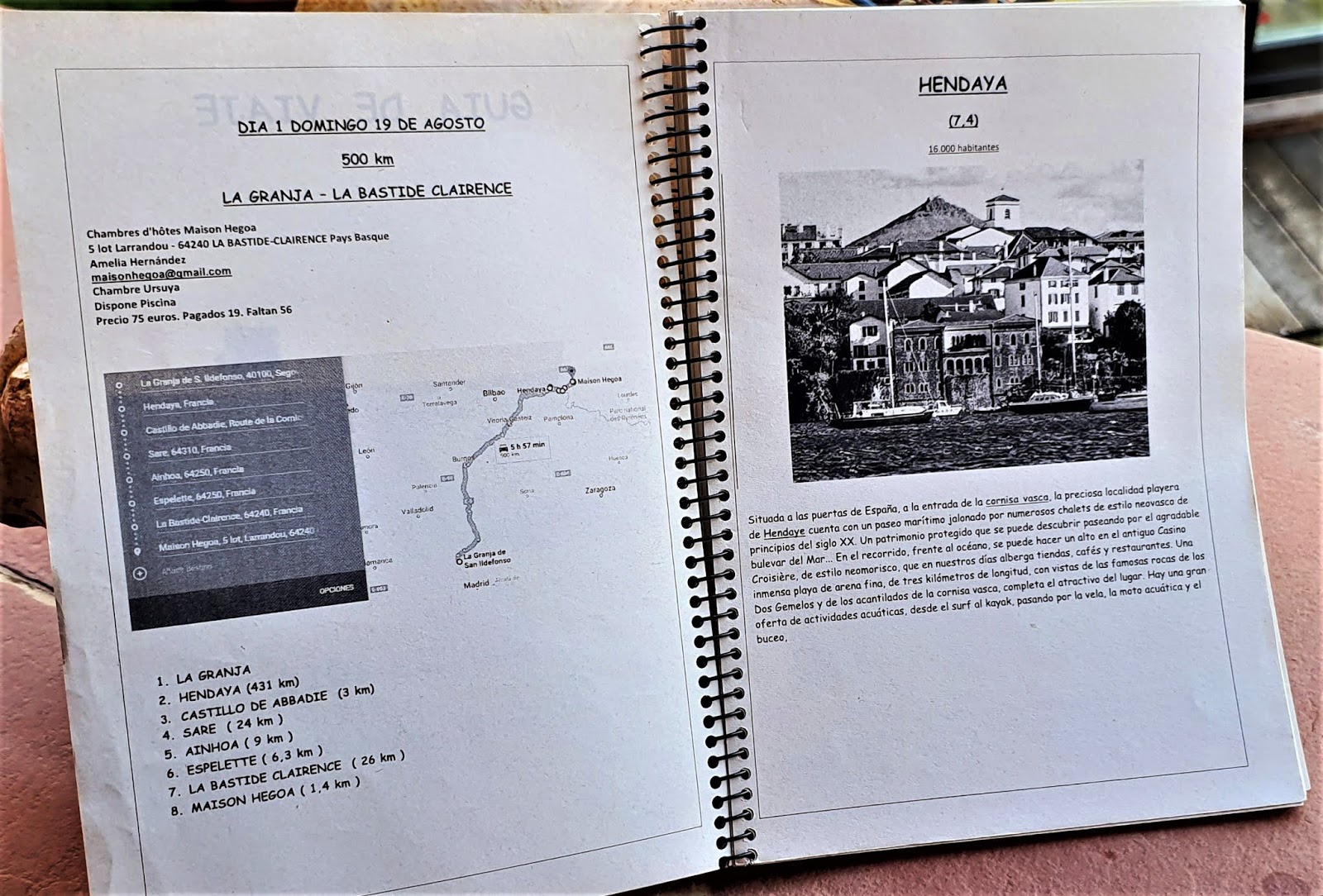 Una vez cerrado el recorrido traslado la información de las rutas, de los lugares a visitar, etc, a un documento que finalmente imprimo y encuaderno a lo barato, que se convierte en la correspondiente Guía Viajera personalizada.