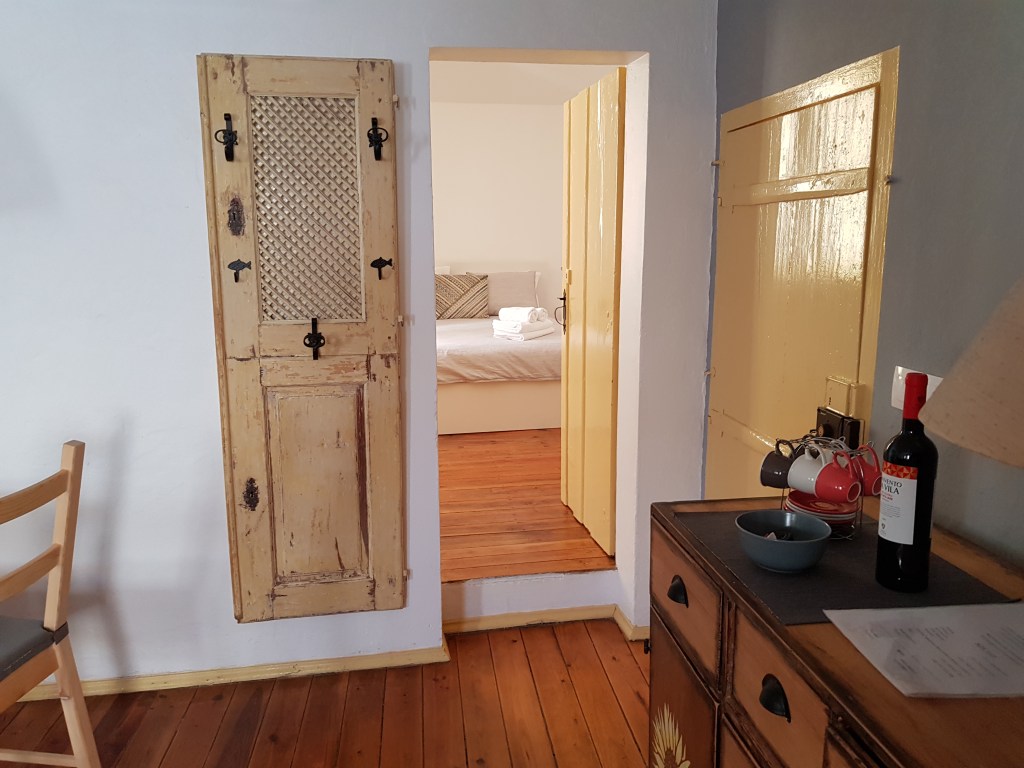 En todo el apartamento destacan los muchos detalles decorativos algunos de los mismos rústicos que dan mucho encanto a este muy buen alojamiento. Nuestro apartamento tenía acceso a una doble terraza superior desde donde se puede ver la ciudad de Elvas, además de ser el espacio en el que pudimos tomarnos una botella de vino local que nos regalaron y que nos pimplamos escuchando fados en la noche de Elvas. Mágico lugar.