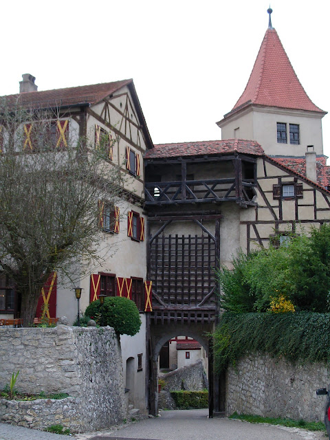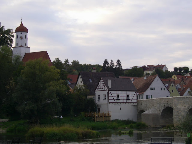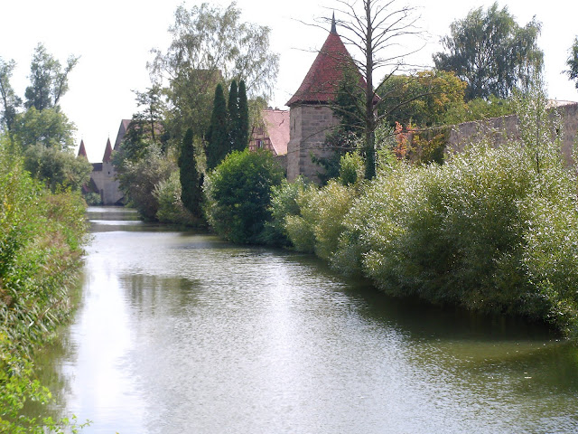 A 29 kilómetros se encuentra Nördlingen, de unos 20.000 habitantes. Otra ciudad totalmente amurallada, con 2,6 kilómetros de murallas , y que se asentó sobre el cráter producido por un meteorito en tiempos inmemoriales.