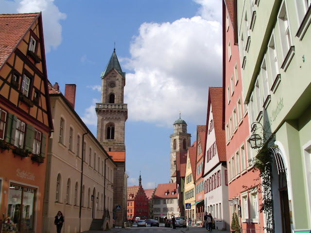 Una vez pateamos Rothemburg ese mismo día por la mañana, nos aventuramos hacia el sur, y con un criterio mucho más selectivo que el día anterior fijamos visitar los lugares que más nos llamaron la atención una vez teníamos información más concreta de la zona. No se si nos dejamos algo importante, pero los tres sitios que visitamos, Dinkelsbül, Nördlingen y Harburg fueron también espectaculares y no hay que dejar de ver ninguno de estas tres poblaciones, muy representativas de la ruta. A 45 km de Rothemburg se encuentra la población de Dinkelsbül.la Romantische Strasse desde nuestra base de operaciones hasta Wurzburgo viendo todas las poblaciones indicadas en el camino.