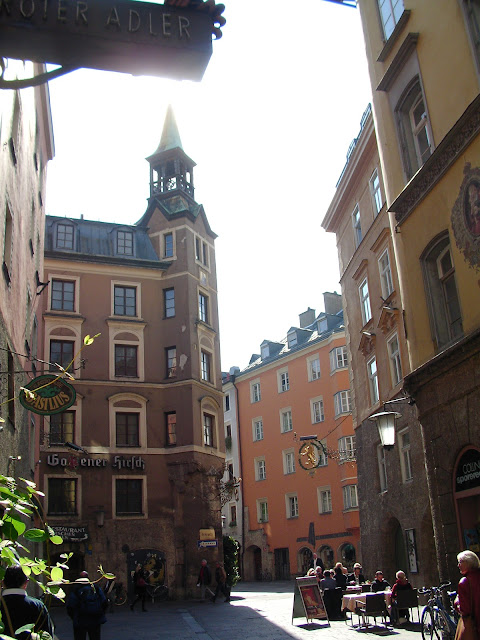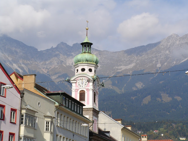 Llegamos relativamente pronto a nuestro punto intermedio de visita , la ciudad austriaca de Innsbruck, capital del Tirol austriaco, metida entre imponentes montañas. Una vez llegamos hicimos el ritual clásico de localizar por el GPS la oficina de información y turismo, y luego un parking cercano donde meter el coche.