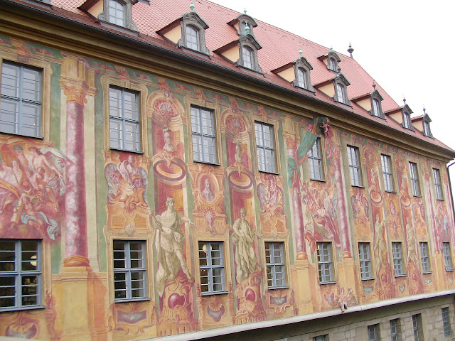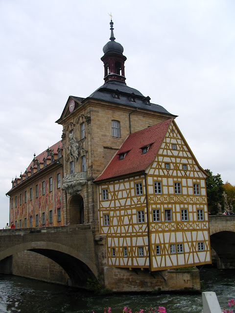 El edificio con entramados de madera que más destaca es el propio ayuntamiento construido sobre una isla del río Regnitz.