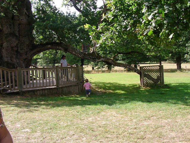 Volvimos por el mismo camino hasta el coche para poner rumbo al Roble de Guillotin, impresionante ejemplar con más de 1.000 años de antigüedad, hueco por dentro y lugar de refugio de un sacerdote llamado Guillotin durante la revolución francesa.