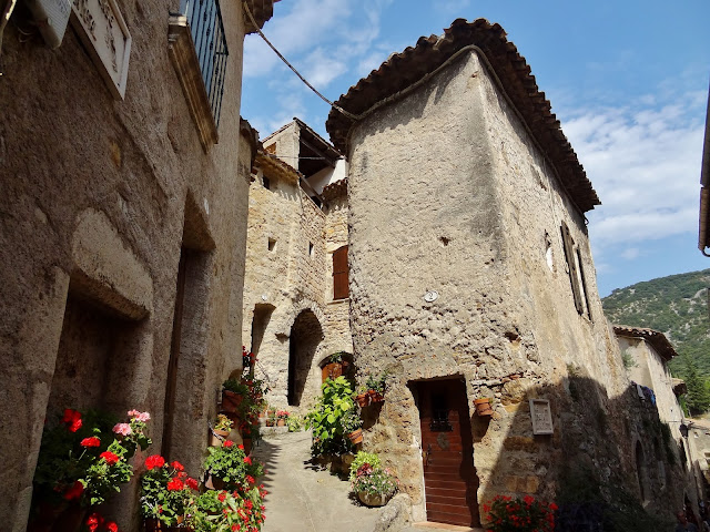 Siguiendo nuestra ruta nos detuvimos en esta también pequeñísima población , pueblo fortificado con hermosas casas de los siglos XVI y XVII, así como una iglesia románica de los siglos XII y XIII, un castillo y una torre.