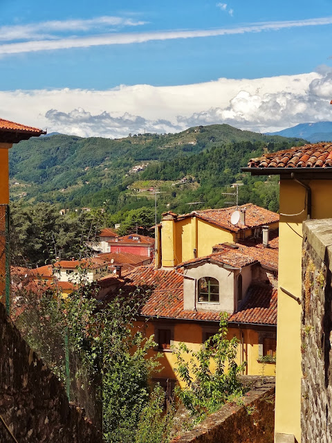 En la parte más alta del castillo, dominado por el impresionante tamaño del Duomo hay unas espectaculares vistas con los tejados irregulares de la parte antigua de la ciudad y rodeados por el verde de las colinas salpicadas de pequeños pueblos y casas de la periferia y en última instancia, el magnífico telón de fondo de los Alpes Apuanos.
