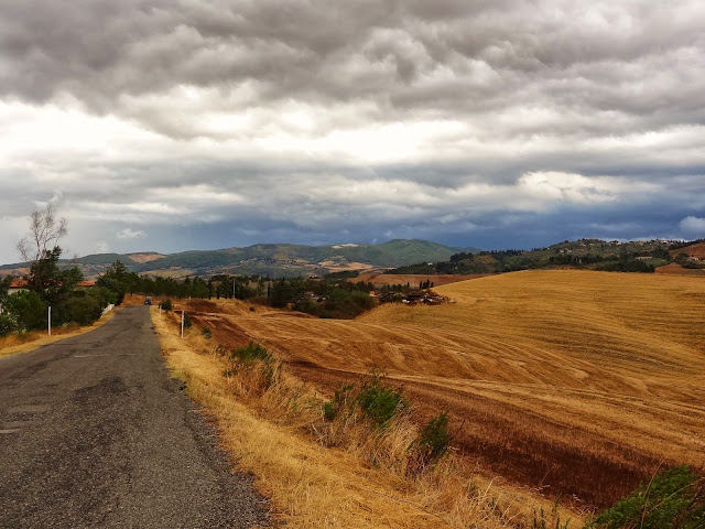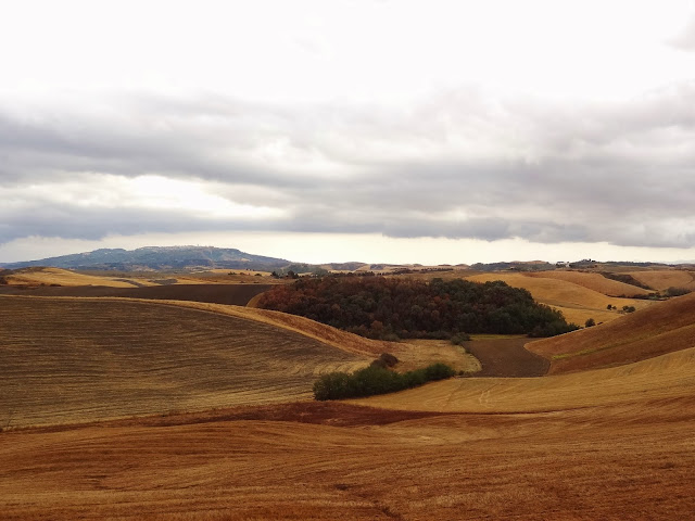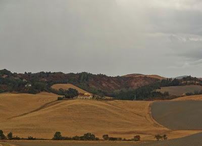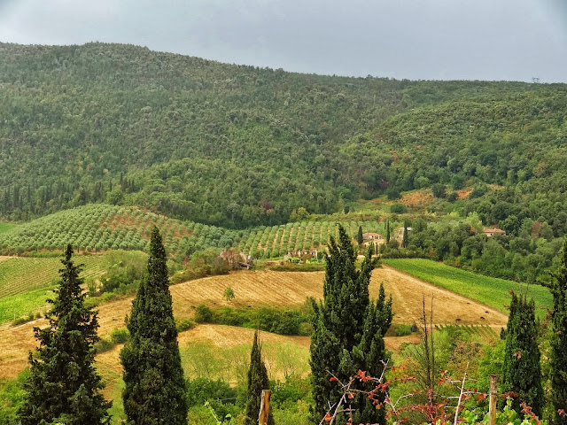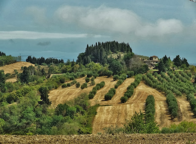 A pesar de la la adversa climatología , en el trayecto hasta Certaldo ya pudimos disfrutar sobradamente de algunas de las bellas y típicas imágenes de la Toscana, caracterizada por suaves colinas trabajadas y cinceladas por el hombre convirtiendo las mismas en obras de arte, cipreses, campos de cereales, viñedos, etc.
