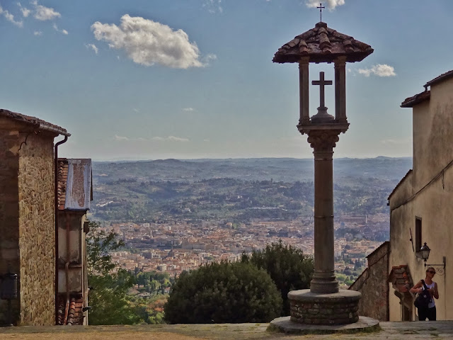 Cuenta con un patrimonio arquitectónico muy destacado, en la parte más baja de la población, Il Duomo y varias iglesias , así como algunos palacios. Subiendo por una calle bastante empinada llegamos al mirador desde el que vemos Florencia y el extenso valle. Y más arriba aún , en la parte más elevada hay un hermoso monasterio, el de San Francisco.