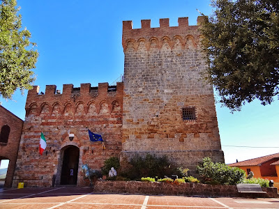 Ejemplo típico de arquitectura militar medieval es un pequeño pueblo totalmente amurallado que conserva intactas sus murallas y las 14 torres que lo protegen, y que se pueden ver perfectamente desde la autopista que conduce a Siena.