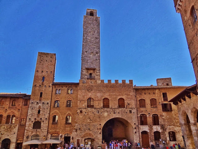 San Gimignano, de origen claramente medieval , incluido en la clasificación «Bandiera Arancione» y situado en un entorno espectacular es muy conocido por sus torres, auténticos rascacielos en la época, símbolos de poder y riqueza, de los que se conservan 15 de los 72 que llegó a tener.