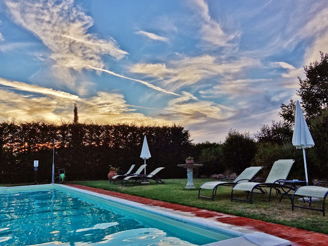 Después de esto nos volvimos a Siena, pudiendo disfrutar en la piscina del alojamiento de un bello atardecer Sienes.