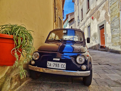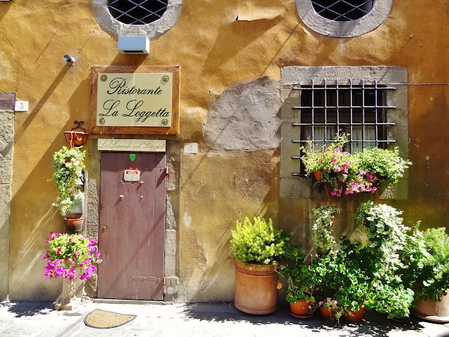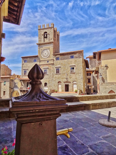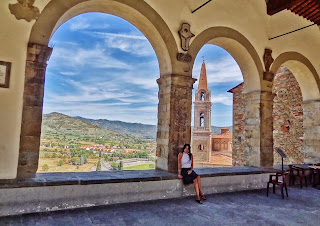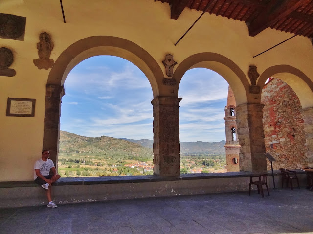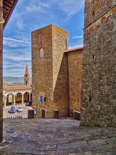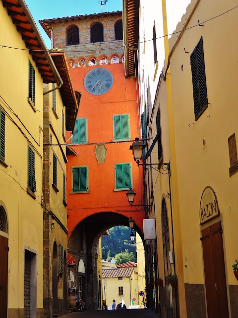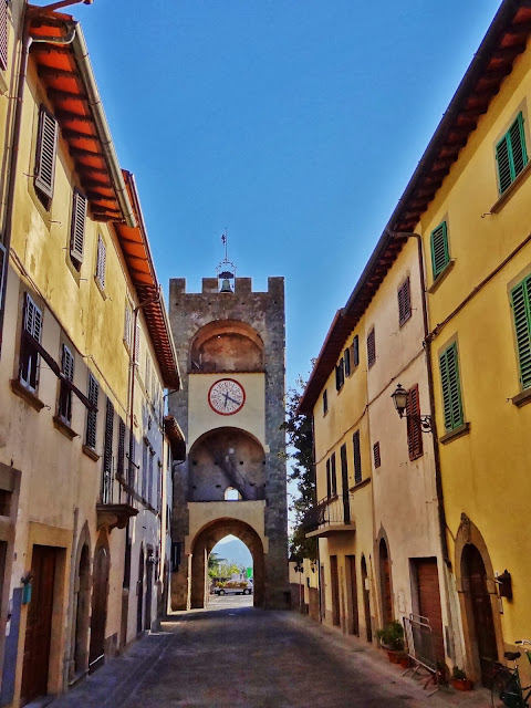 «Bandiera Arancione». En este pueblo de 13.000 habitantes hicimos una corta parada en la plaza principal de la población, donde se puede disfrutar del Pórtico Vasariano y desde allí a la zona del Cassero, fortificada y que conserva una magnífica torre de origen etrusco.
