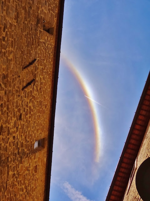 Allí además nos encontramos con un curioso fenómeno natural en el cielo toscano…. algo parecido a una minúscula aurora boreal, no podía ser un arco iris… Fuera el fenómeno meteorológico que fuera, resultaba muy atractivo.