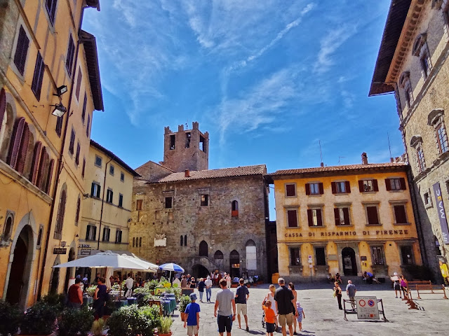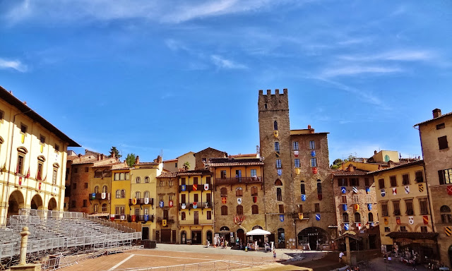 El centro neurálgico de la ciudad es su Piazza Grande, escenario de su fiesta más importante, la Giostra del Saracino, un auténtico festival medieval en el que se enfrentan los cuatro barrios de la ciudad en una justa y en el que participan todos los ciudadanos de Arezzo.