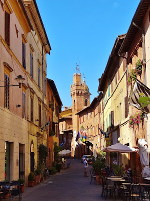 El paseo por la ciudad es encantador con una calle larga, Corso Rosellino, que va cruzando varias plazas , siendo la más destacada la Piazza di Pio II donde podemos encontrar el Duomo, el Palazzo Piccolomini y el Ayuntamiento.