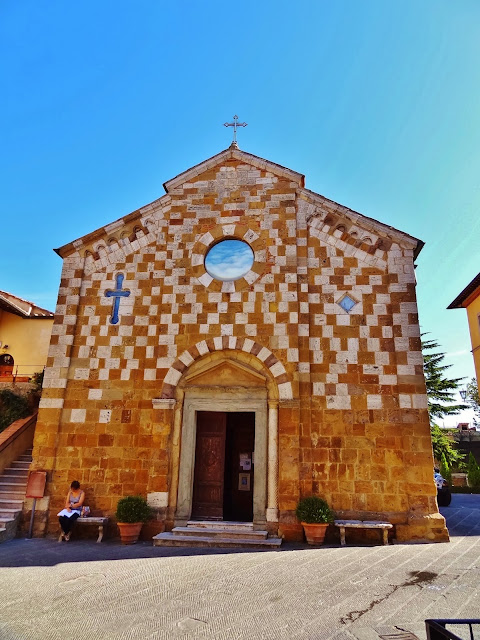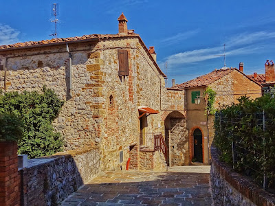 Pequeña población, clasificada Bandiera Arancione y situada en una colina de 462 metros de altitud creada alrededor de un castillo del siglo XIII , nos entrega unos bellos rincones en los que destaca de manera importante su iglesia de San Pietro y San Andrea que tiene una muy curiosa fachada de cuadros blancos. En su interior un destacado políptico de Giovanni di Paolo.