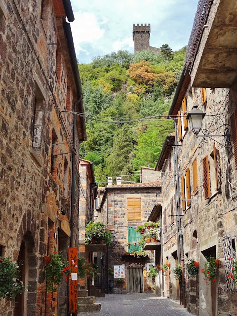 Con el tiempo aún fresquito ,aunque en esta zona dejó de llover, llegamos a Sarteano. Población de origen medieval está edificada en torno a un castillo.