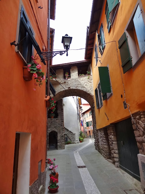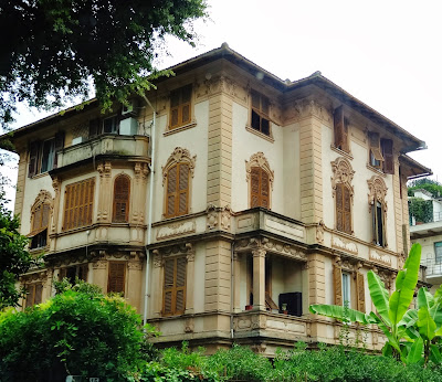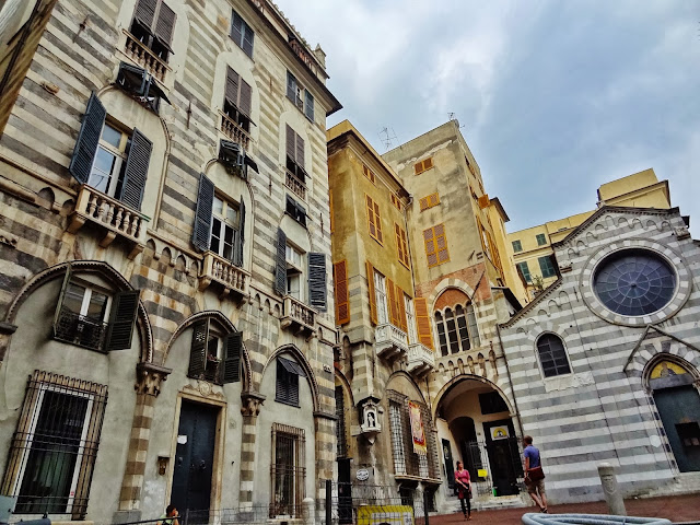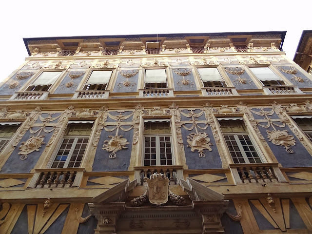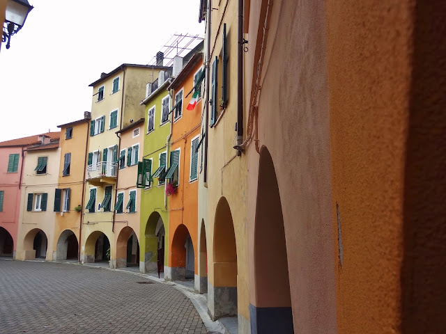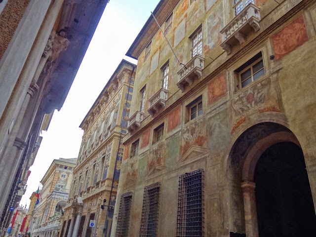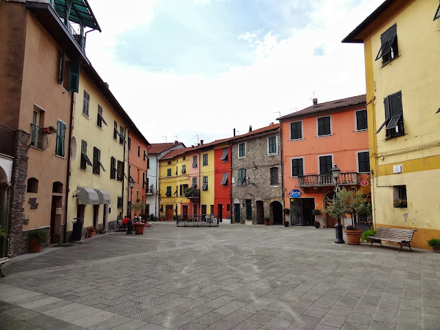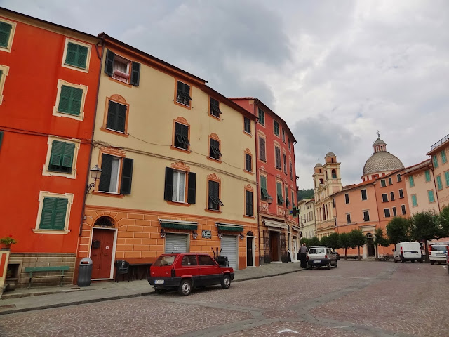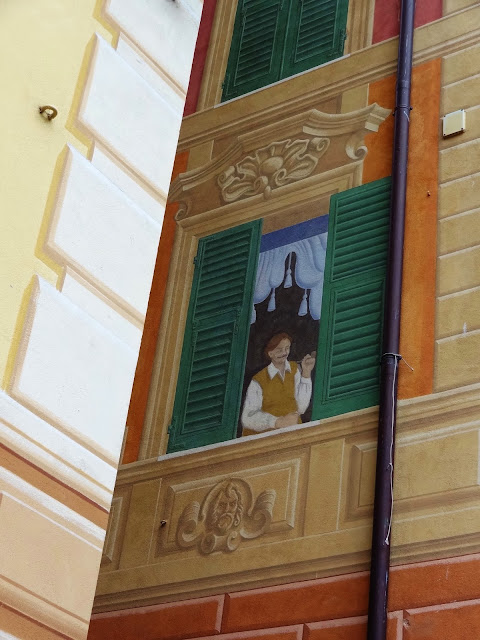 Una peculiaridad de esta zona y de Liguria como ya pudimos apreciar, son las típicas fachadas pintadas, con excelentes trampantojos que representan elementos arquitectónicos y decorativos: basamentos, marcos, balcones, flores y persianas cerradas.