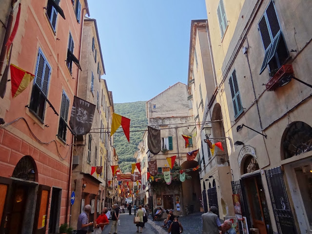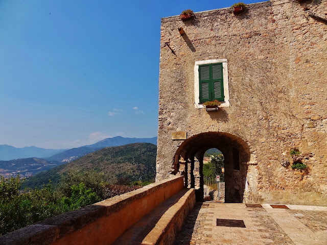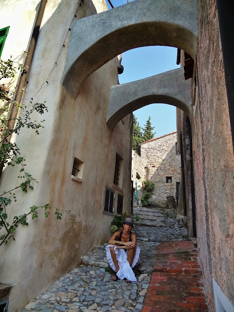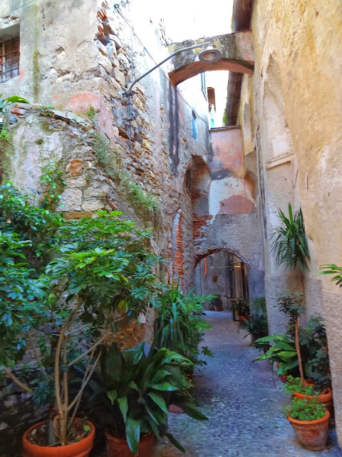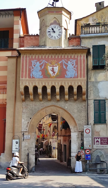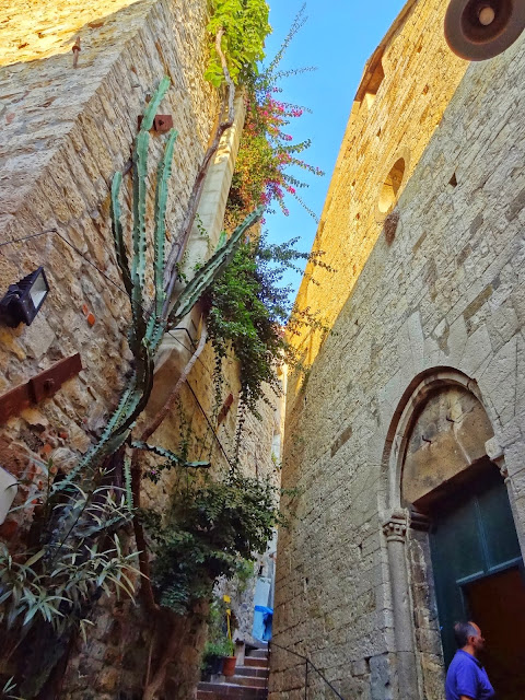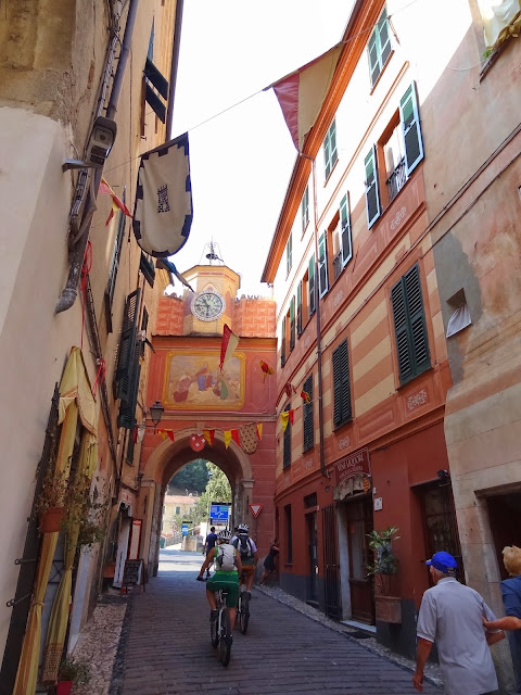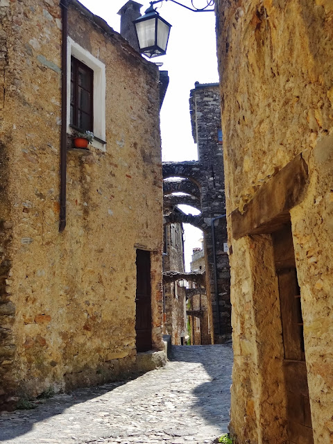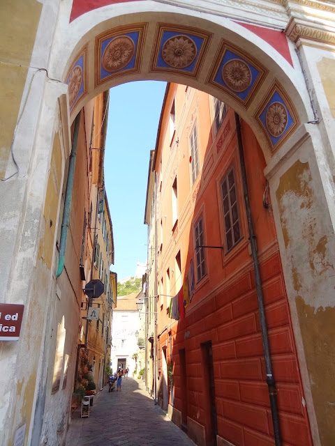 En Verezzi disfrutamos de unas magníficas vistas de la costa ligur y empezamos a observar en sus estrechas calles un elemento constructivo habitual en muchos de los pueblos que íbamos a visitar , puentes o arcos de contención entre las casas y que cruzan las calles.