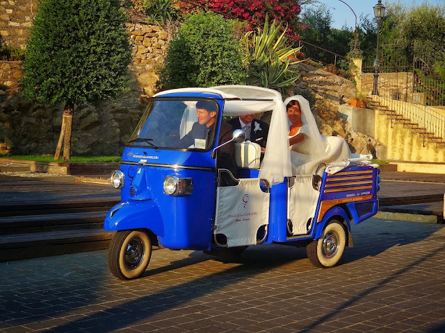 En la parte alta cerca está su castillo y había una boda, que nos otorgó una de las imágenes italianas, de la típica PIAGGIO ejerciendo de coche nupcial, además de alguna plaza y rincón con cierto encanto.