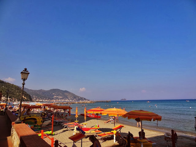Dominada por un castillo medieval que fue la antigua residencia de los Marqueses de Clavesana, antiguas villas nobles sobre estrechas estrechas y empinadas calles descienden hasta la playa.