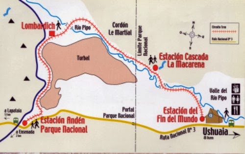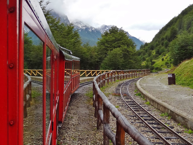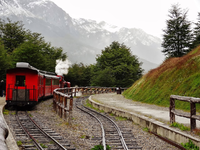 Decidimos llegar hasta la Estación del Tren del Fin del Mundo y en este tren de época rememorar el recorrido que hacía el mismo llevando a los presos de la penitenciaria de la ciudad y que trabajaban explotando los recursos naturales, especialmente talando bosques , para servir al desarrollo de la ciudad de Ushuaia.
