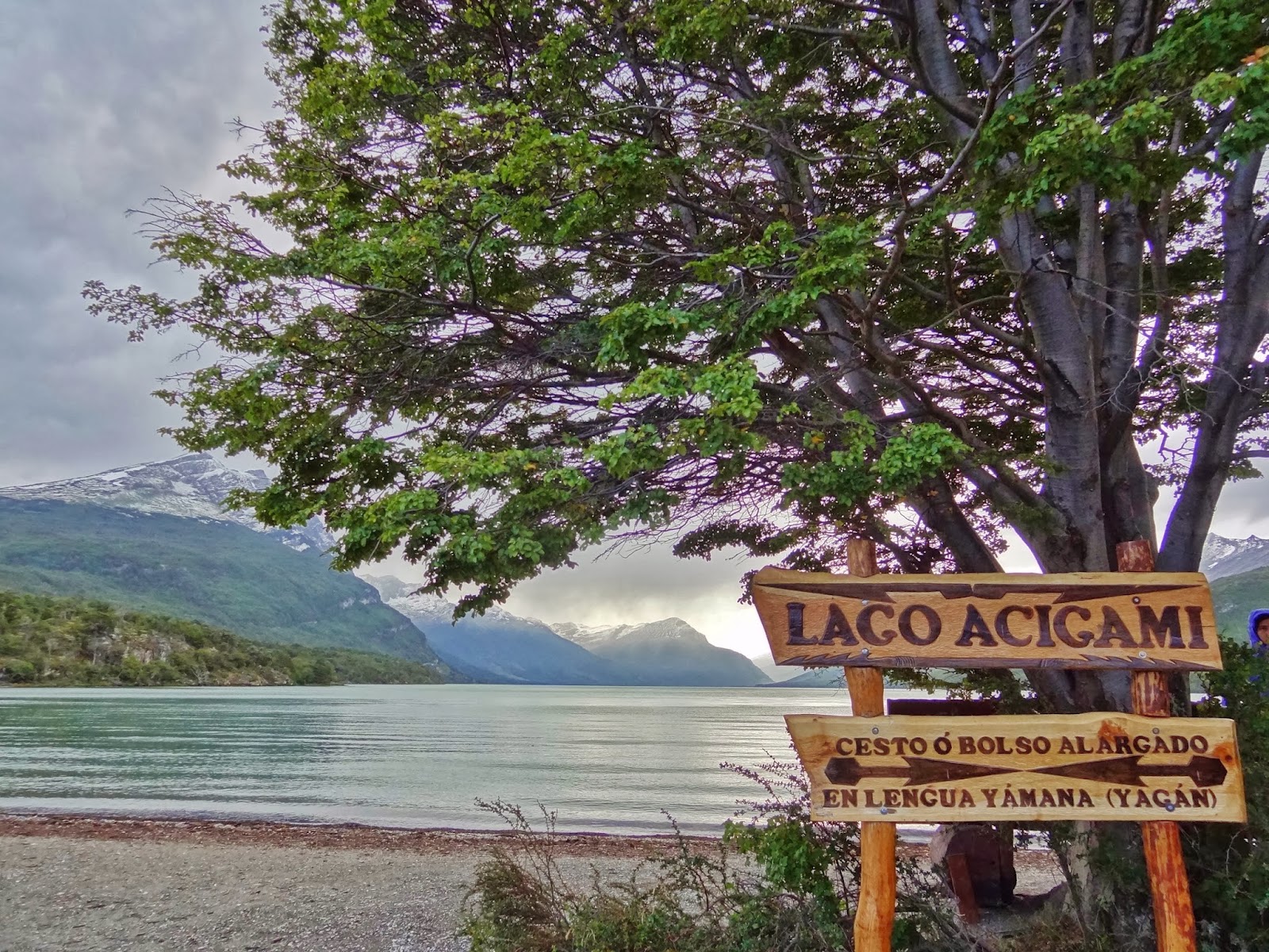 El siguiente punto que decidimos visitar fue este Lago cuya cuenca es binacional ya que se encuentra justo en el límite entre Chile y la Argentina. Los pueblos originarios de la zona lo llamaban Acigami, que en lengua yaghan o yamaná ,significa «cesto o bolso alargado» .