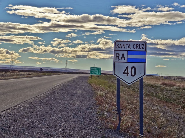 Nos faltaban todavía 300 km para llegar a El Calafate de muy buena carretera y en la que nos topamos con espectaculares paisajes y las primeras señalizaciones de la famosa ruta 40, protagonista de nuestro viaje.