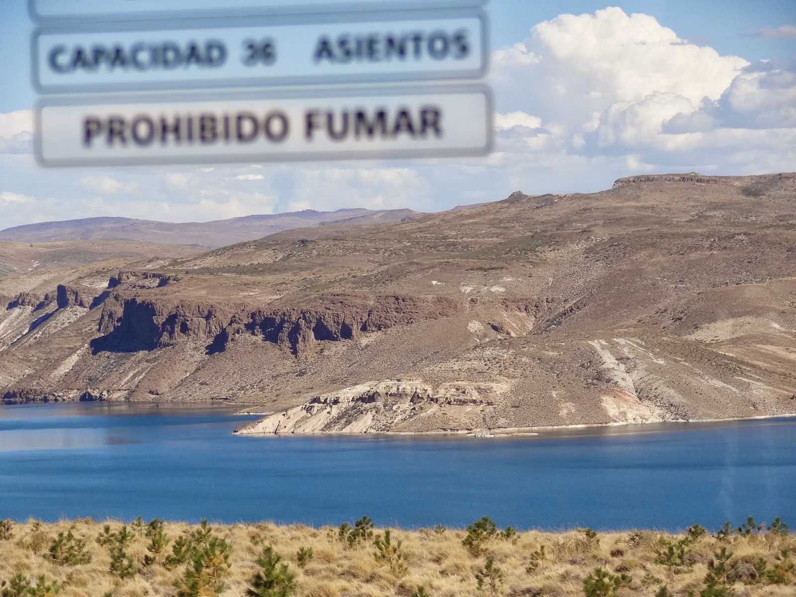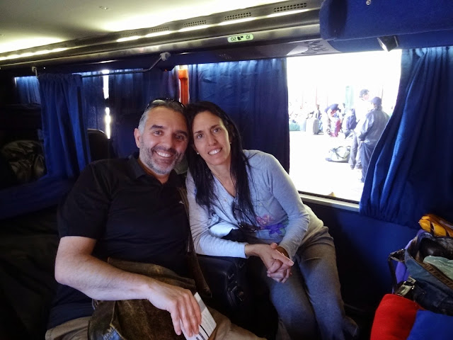 Los autobuses de larga distancia argentinos son de una excelente calidad. Donde en España un autobús común dispone de 52 plazas, estos argentinos suelen ser de 26 distribuidos en dos plantas, 6 plazas – cama en la baja y 20 cómodas butacas en la superior. Nosotros viajamos en una de las plazas cama.