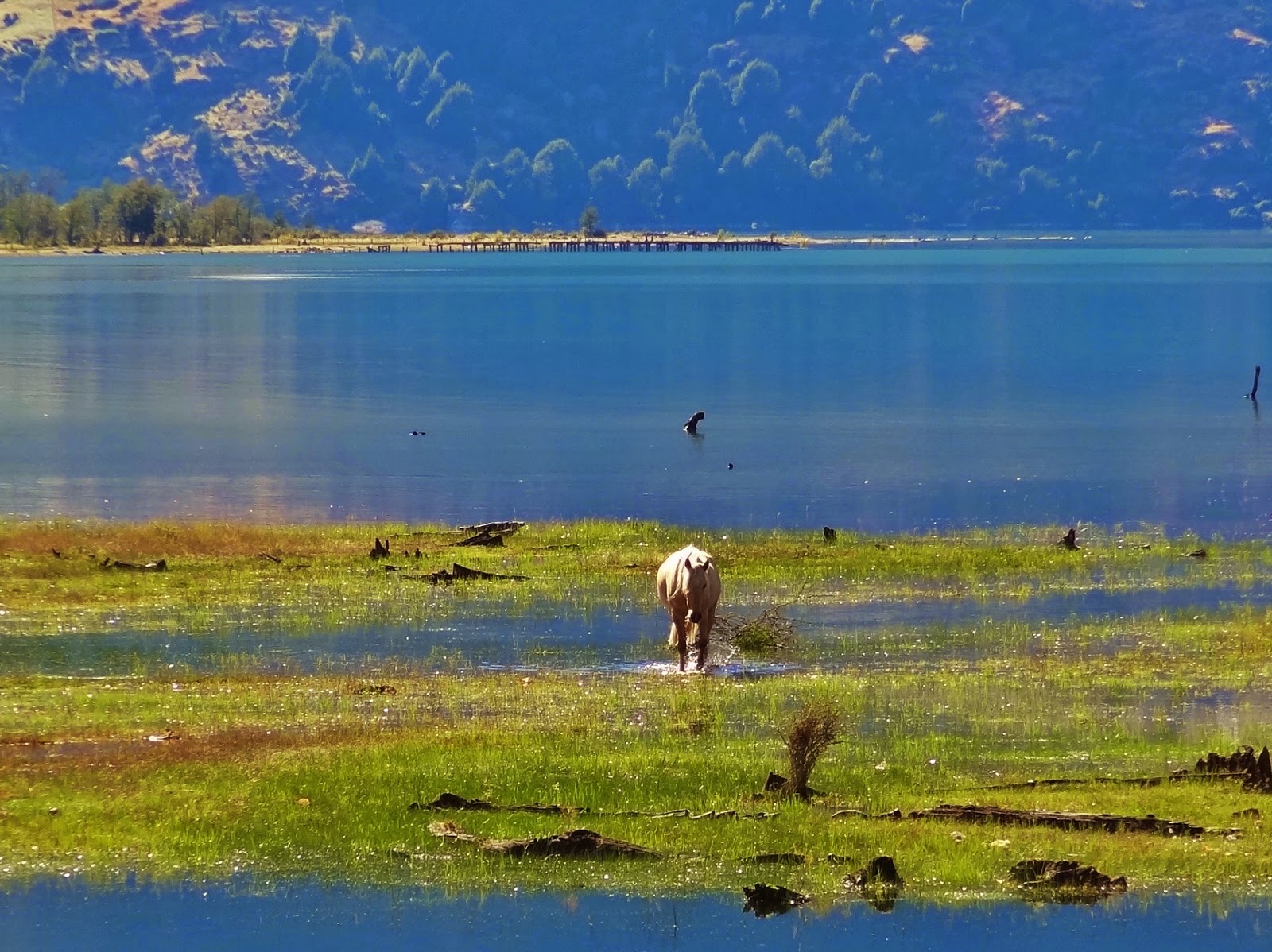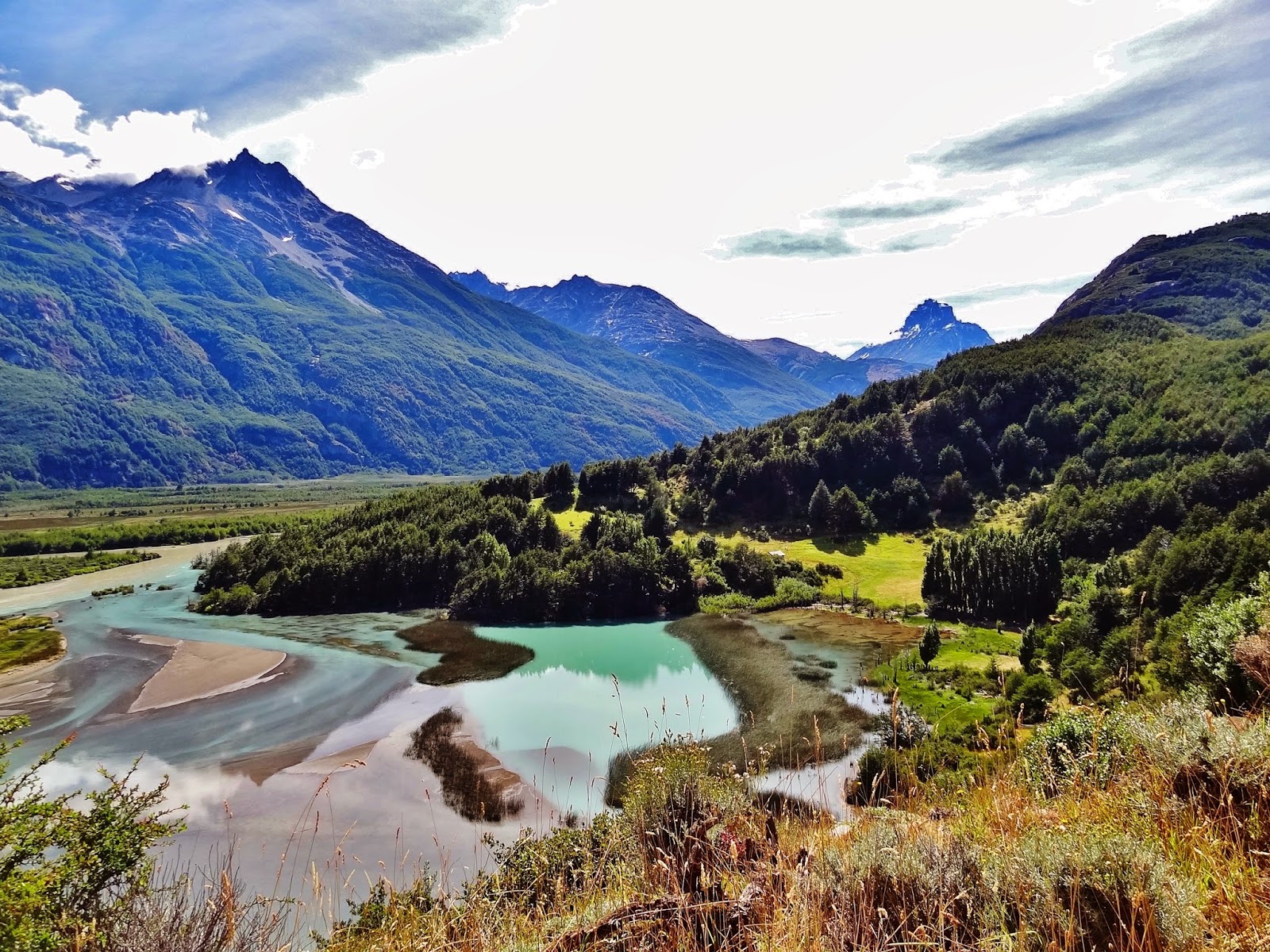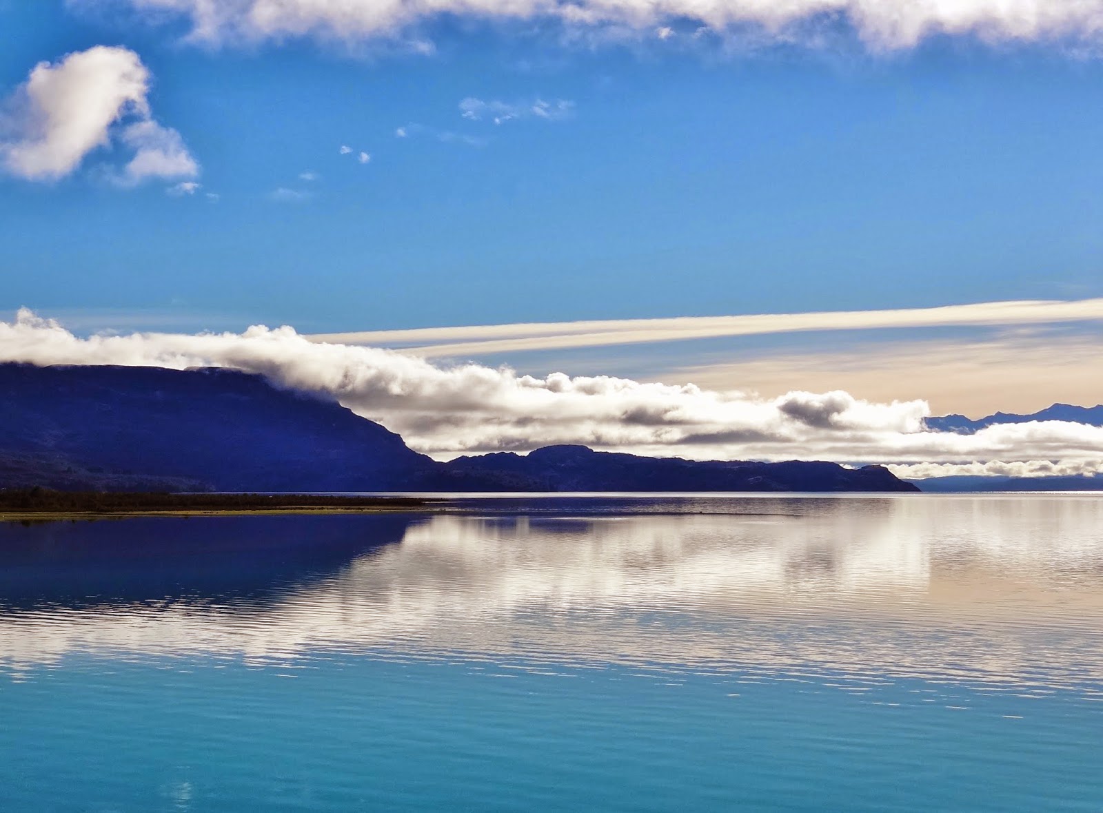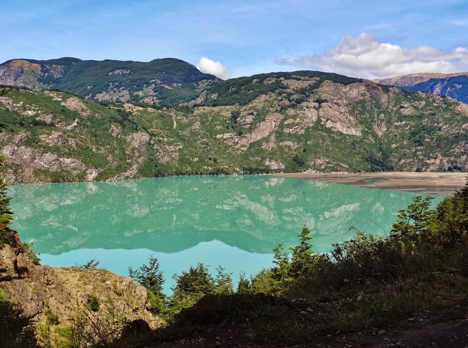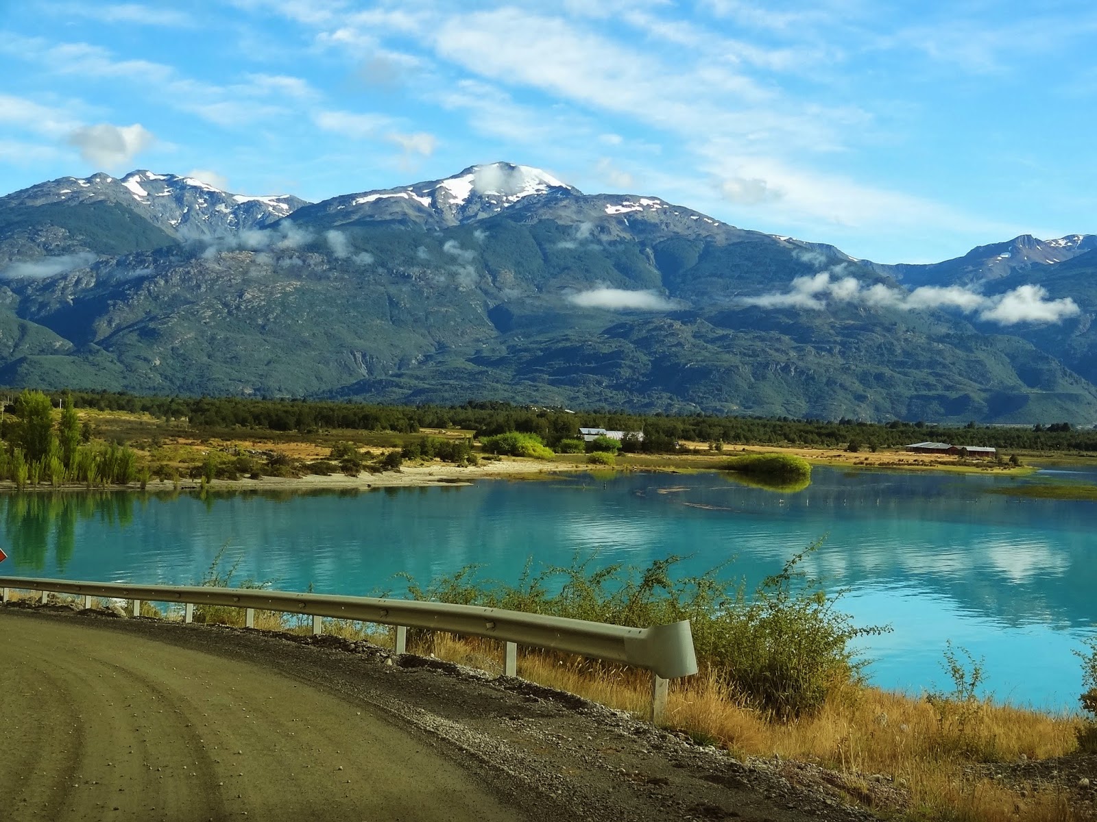 Dejamos atrás el Lago Carrera para empezar a circular por tramos de la ruta interiores, todos de ripio….. no abandonábamos de momento estas incómodas carreteras, pero en compensación seguíamos disfrutando a ritmo tranquilo de impactos visuales extraordinarios, con montañas, lagos y ríos de un azul turquesa a lo largo del recorrido.