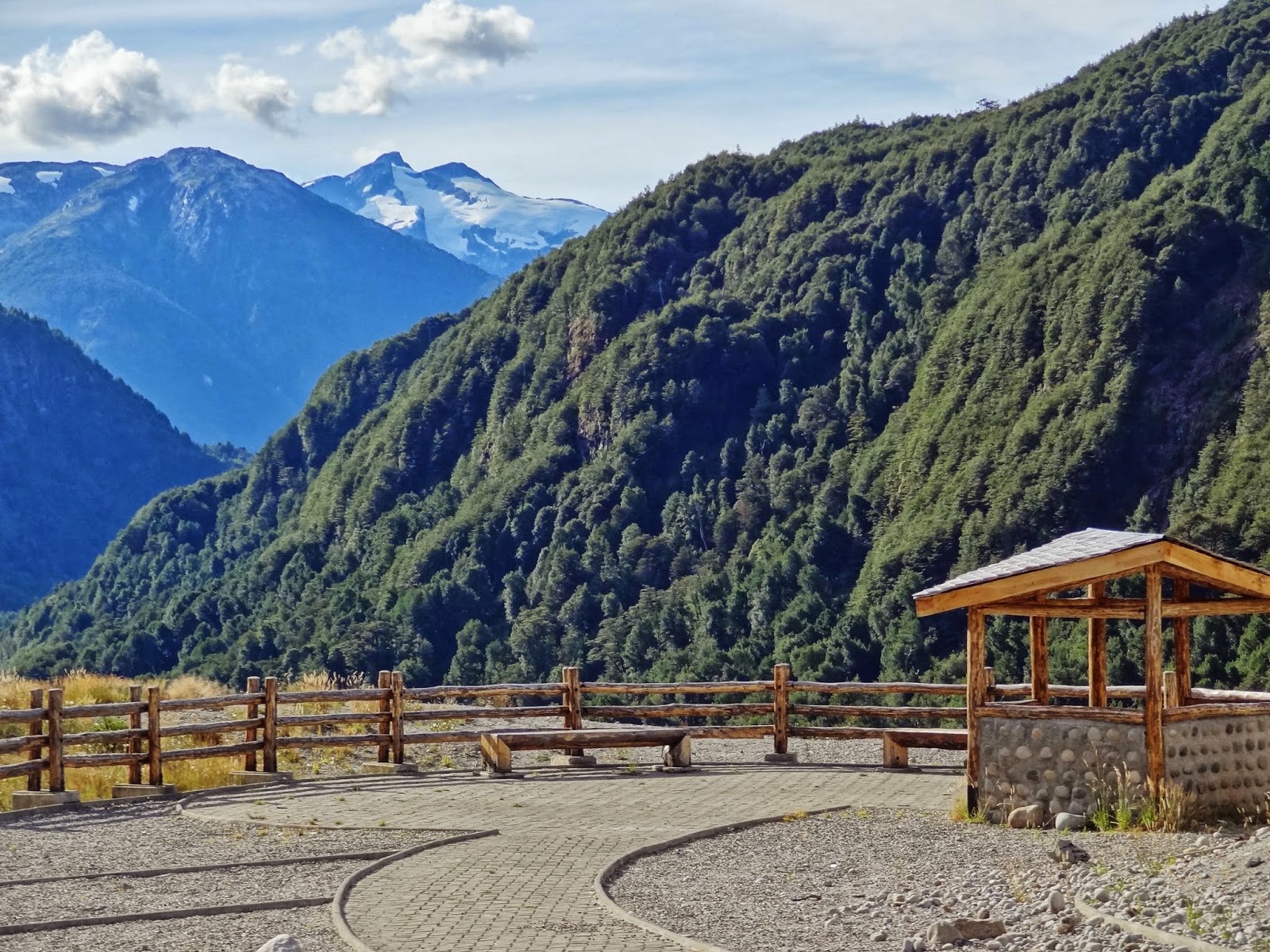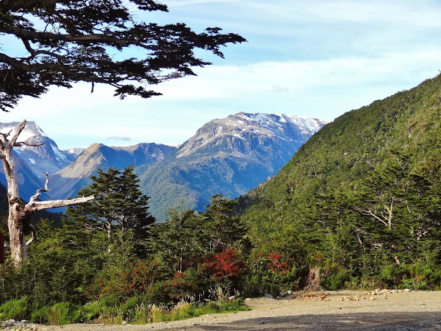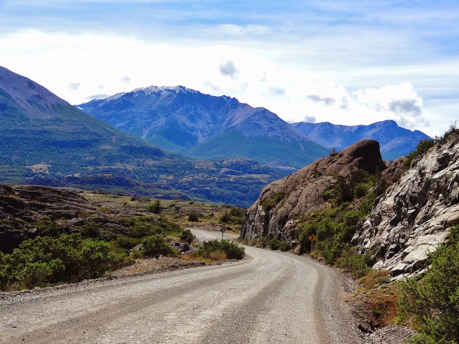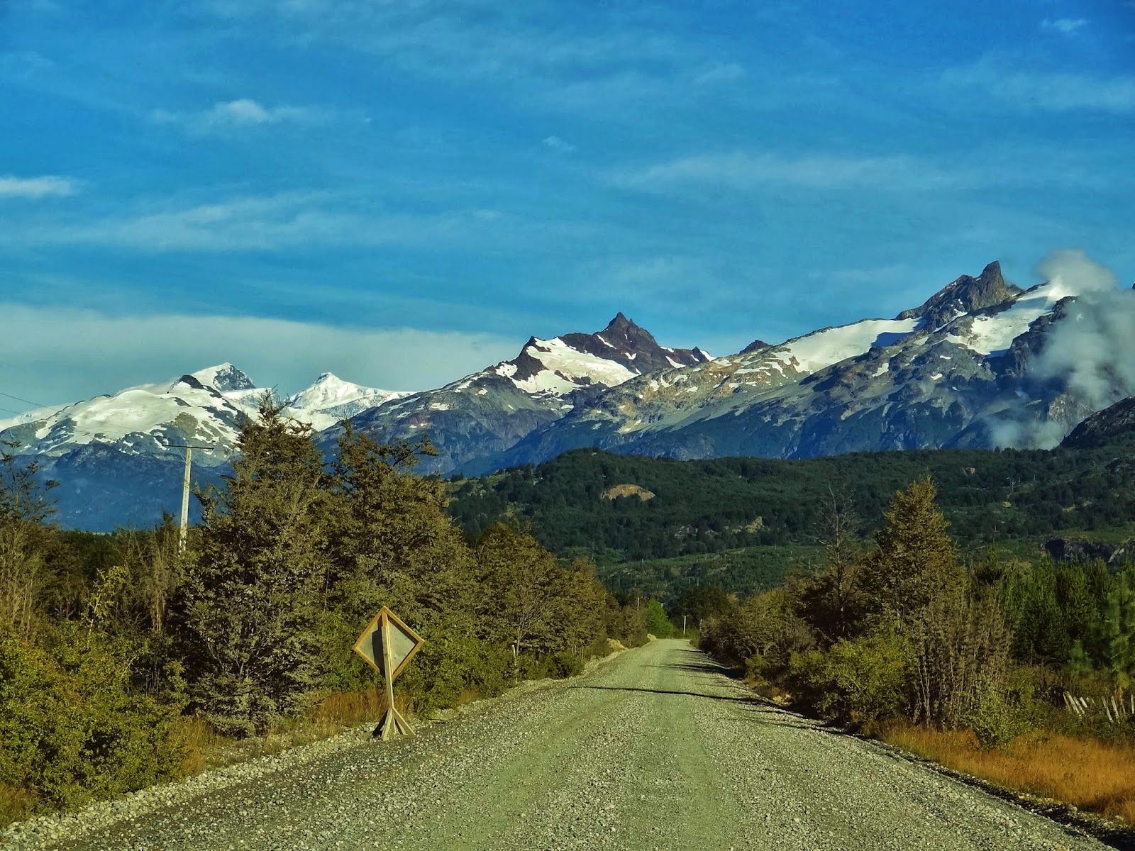 Sobre las dos de la tarde, unas cuatro horas desde el inicio de la ruta dejamos las carreteras de ripio aún transitando por zona montañosas, en las que a pesar de estar en pleno verano austral los glaciares y nieves perpetuas dominan estos paisajes.