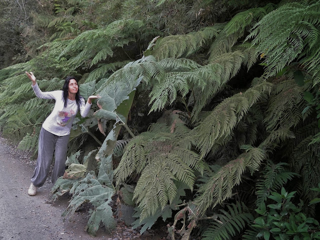 Y si ya en el resto del territorio que hasta el momento habíamos recorrido, esta idea se había manifestado como algo más que evidente al llegar al Parque Nacional Queulat se vuelve a constatar, con unos bosques y vegetación exuberante con plantas llamadas Nalca y helechos de gran tamaño. Un árbol típico de la zona y también de una gran belleza es el Cohiue.