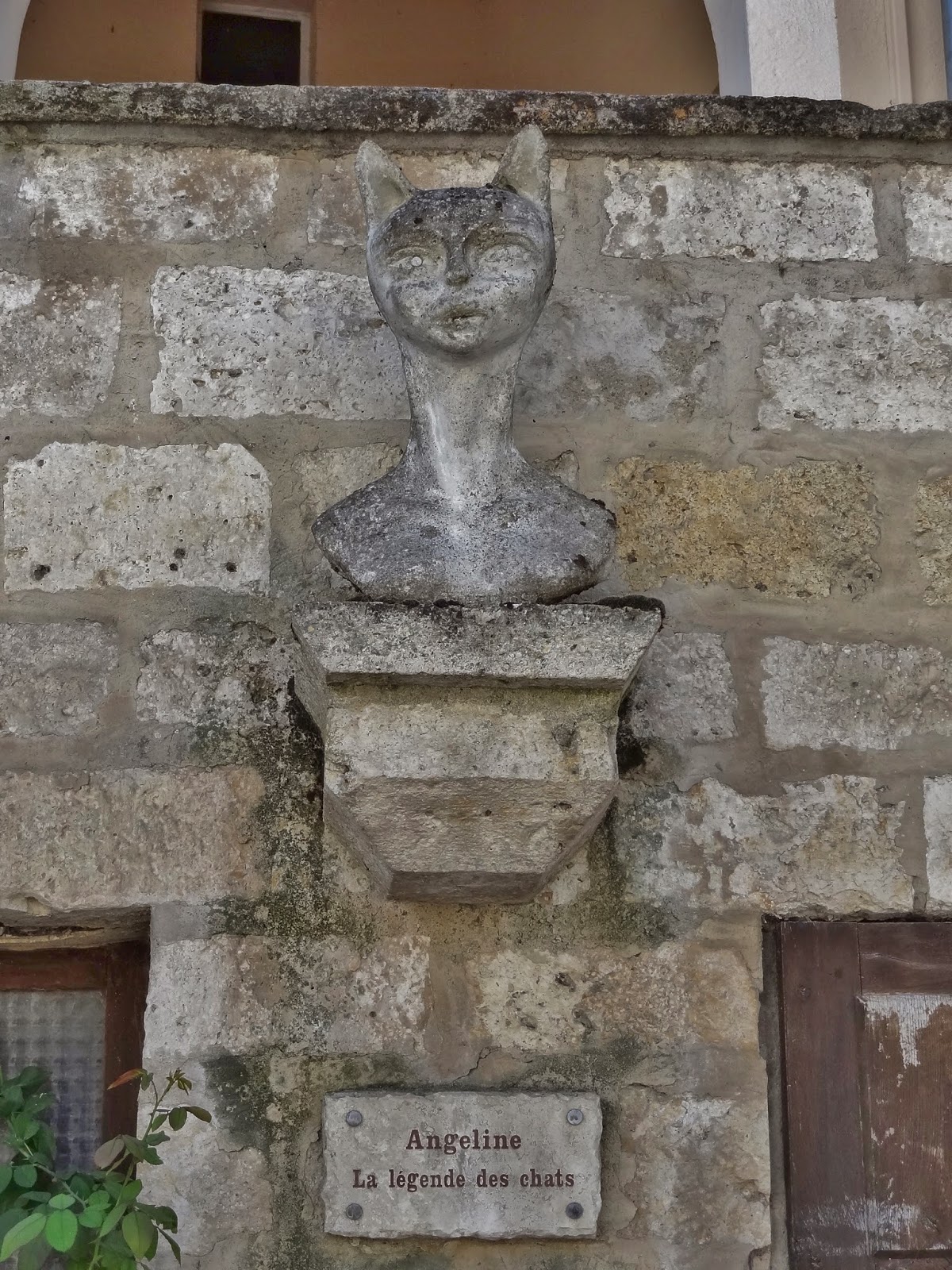 La leyenda sigue contando que Angéline, que vivió felizmente con sus gatos desde entonces, fue adquiriendo cara de gata al envejecer. A la entrada del pueblo puede verse un busto suyo, y hay montones de estatuas de gatos por las calles y fachadas.