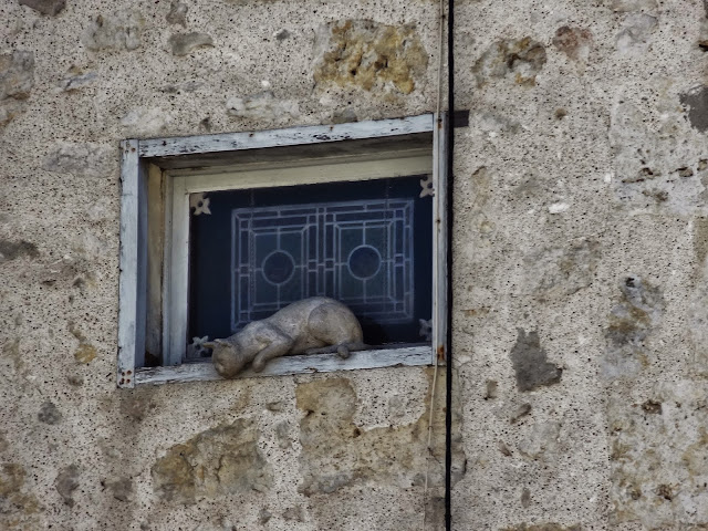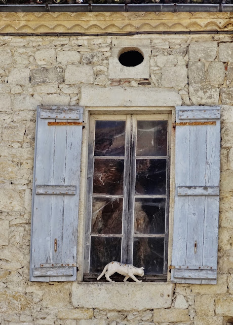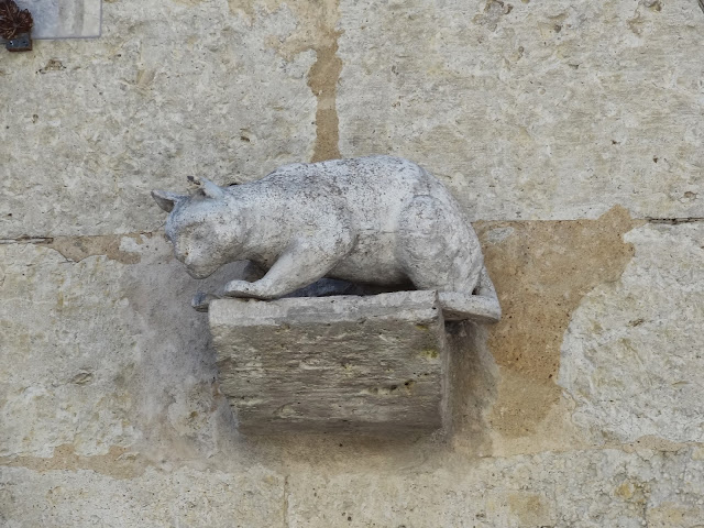 Alrededor de la plaza central de La Romieu, se pueden ver unas curiosas y variadas esculturas de gatos, en ventanas, balcones y sobre las puertas de las casas. Todo proviene de la tradición y leyenda de Angéline.