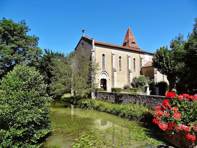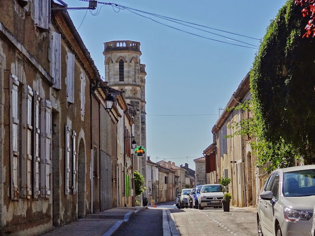 A muy poca distancia la pequeñísima población Mansencôme, pueblo rodeado de la campiña cultivada de girasoles y que tiene un Castillo del siglo XVIII. Y empezamos a observar la presencia de construcciones típicas gascuñas, con torres adosadas a las viviendas o individuales, que supongo serían graneros pero todos con característicos tejados a cuatro aguas.