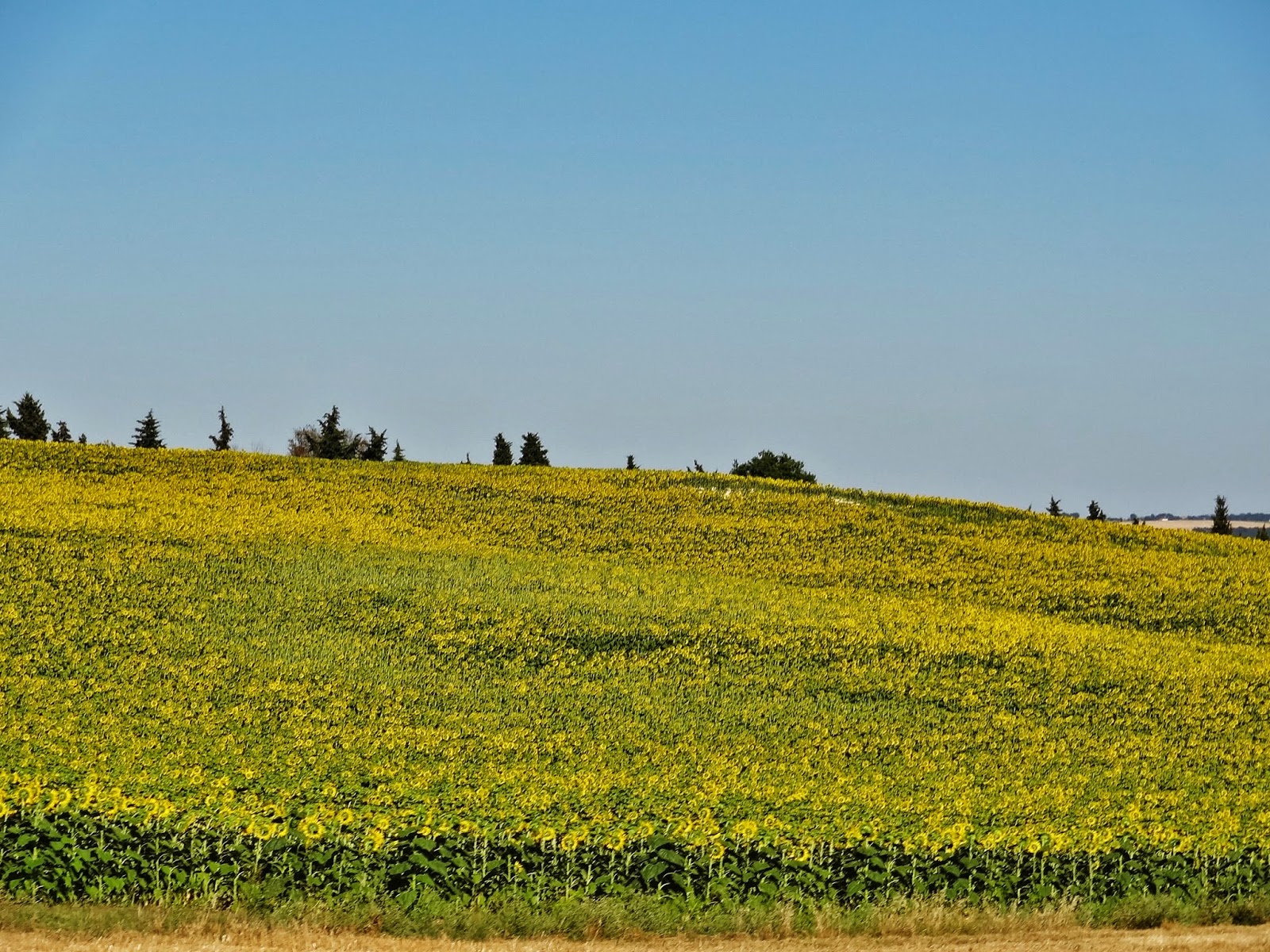 Hablaban de la Lomagne como una pequeña Toscana de suaves colinas, así que decidimos adentrarnos por este territorio acercándonos hasta su capital. Y acertamos porque encontramos preciosos paisajes , como no , inundados de campos de girasoles.