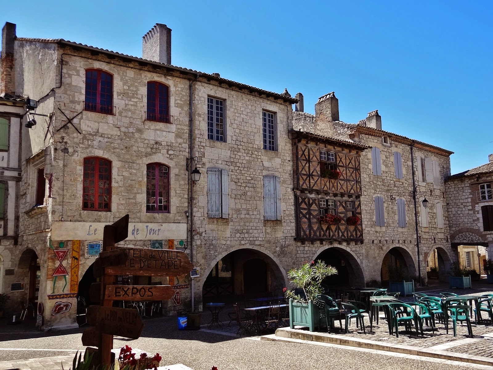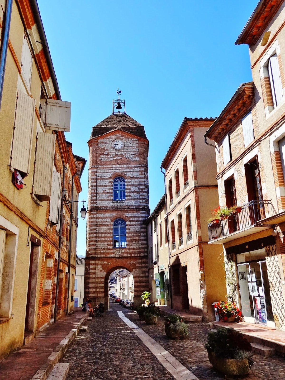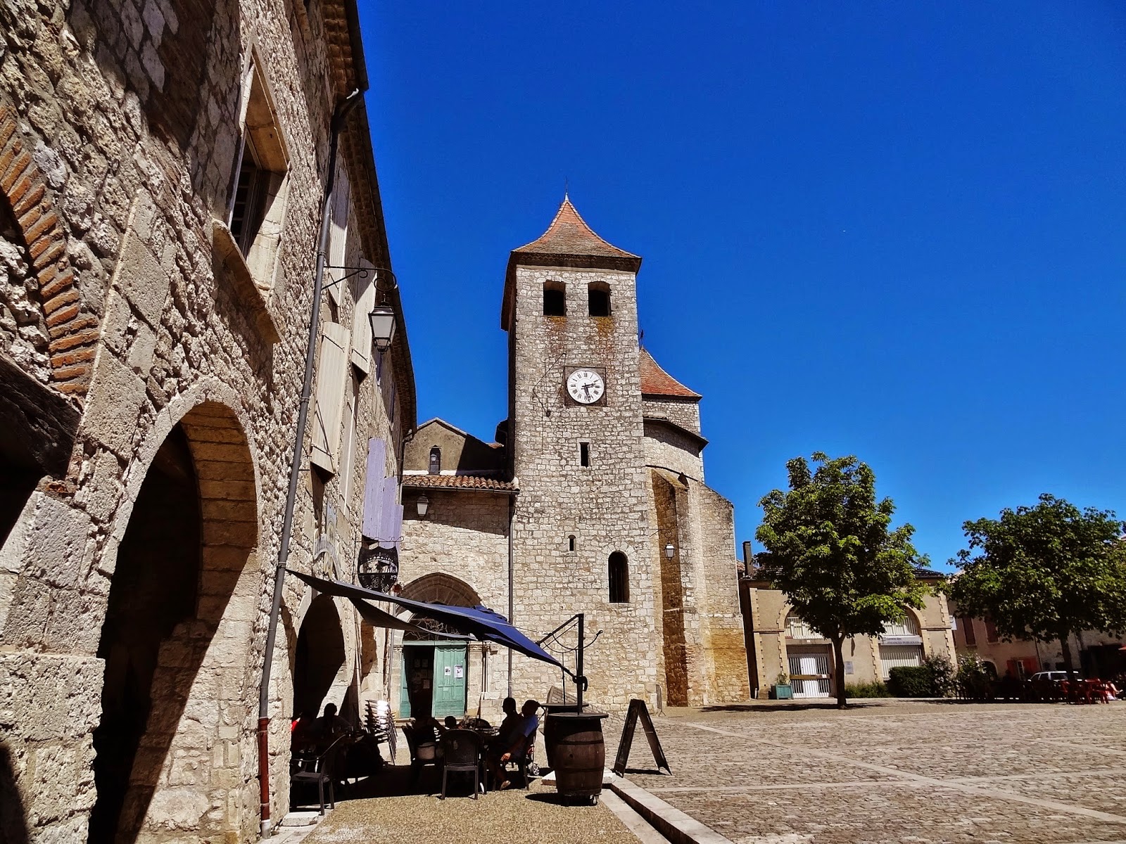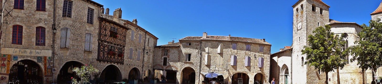Nos gustó mucho este pueblo situado en la cima de la colina llamada Quercy Blanc, tal y como ocurre con las ciudades medievales de la Toscana italiana. Tiene una hermosa plaza central con soportales, casas de piedra y entramados de madera, en la que también se ubica, en uno de sus laterales, la Iglesia de San Bartolomé. En su interior un magnífico retablo de madera.