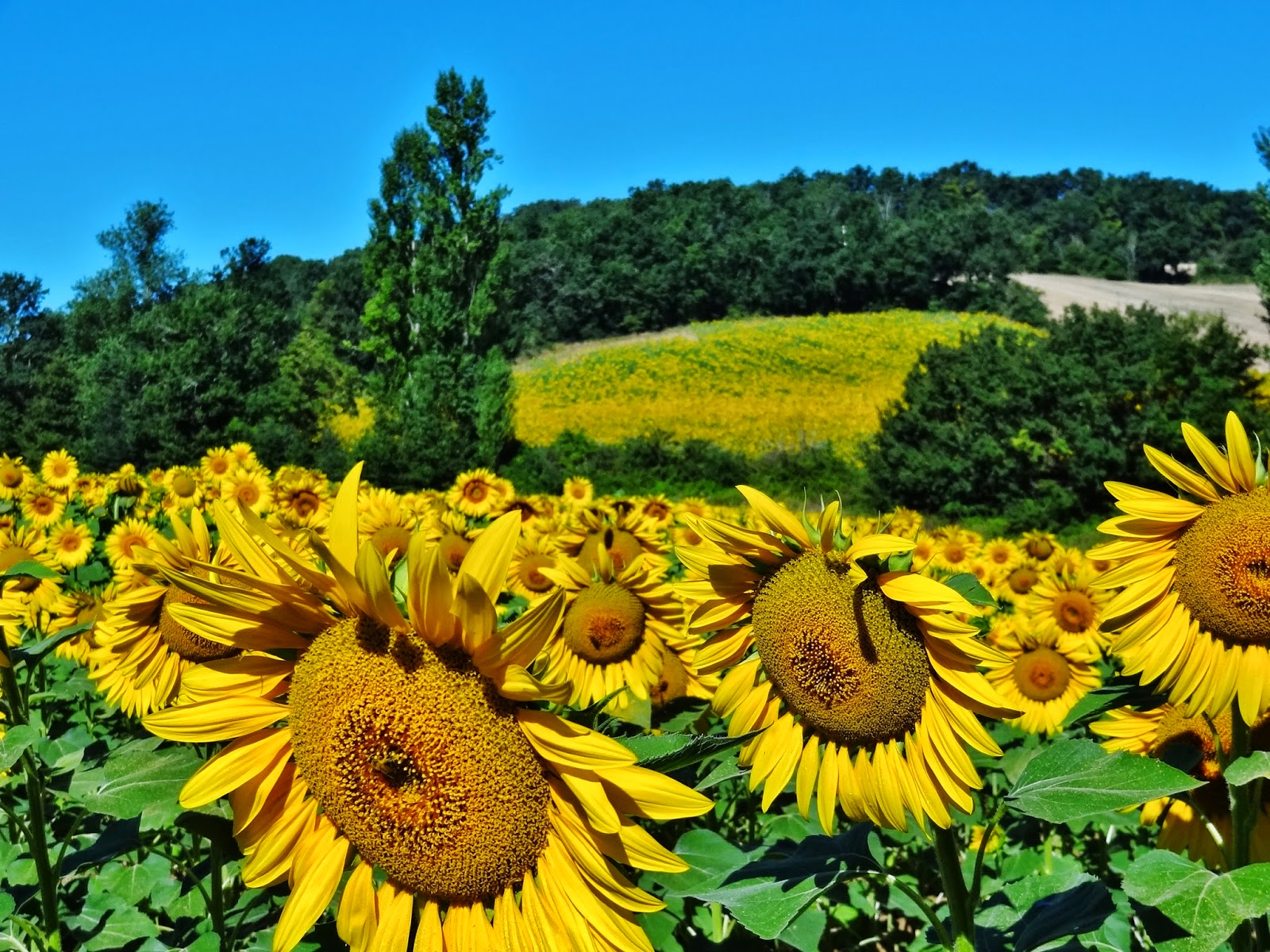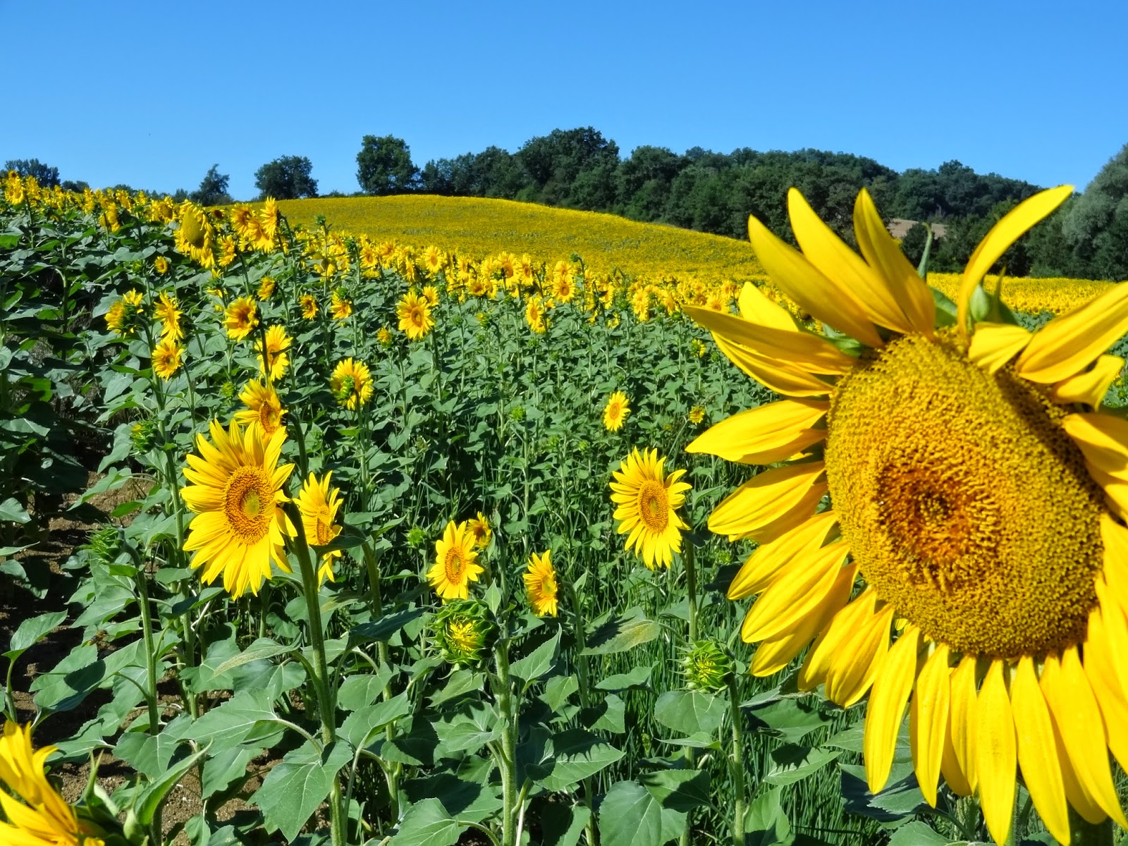 Una vez en ruta, de nuevo empezaron a acompañarnos los paisajes repletos de campos de girasoles que iluminan las suaves colinas Gascuñas.
