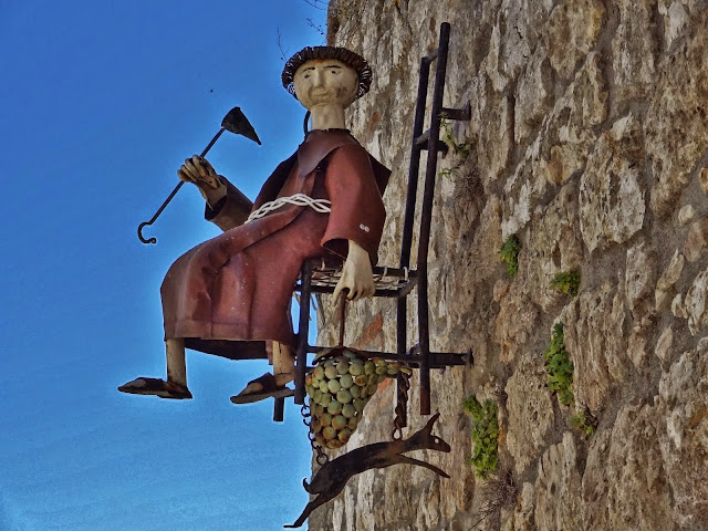 En este pueblo se observa claramente el cuidado por el detalle, por el equilibrio, por el respeto al aspecto medieval del mismo. No se observa ni un solo cartel de bares, restaurantes, tiendas, etc, en neón o plástico. El pueblo es un verdadero catálogo de señalizaciones artísticas, la mayor parte de ellas en forja.