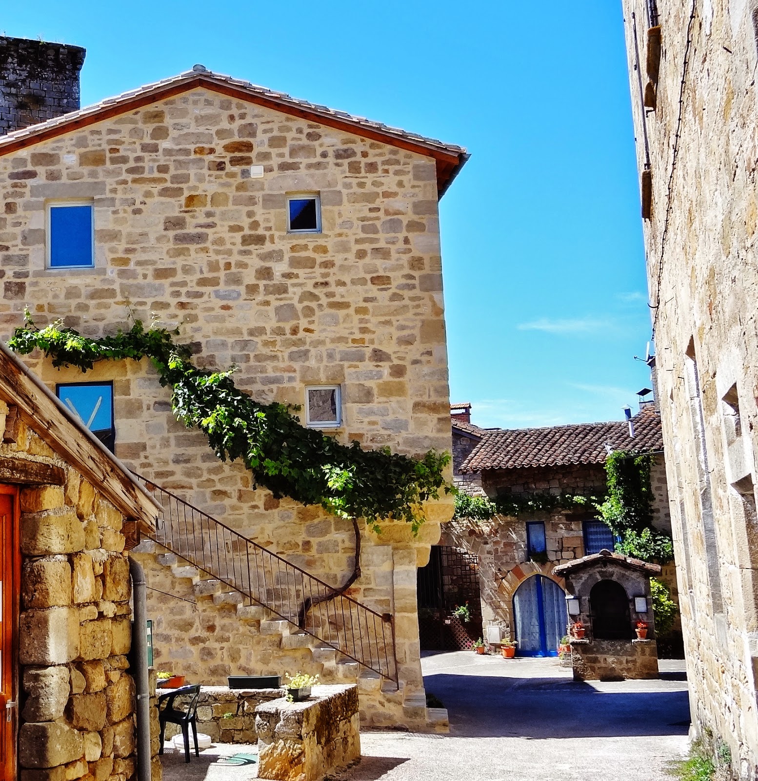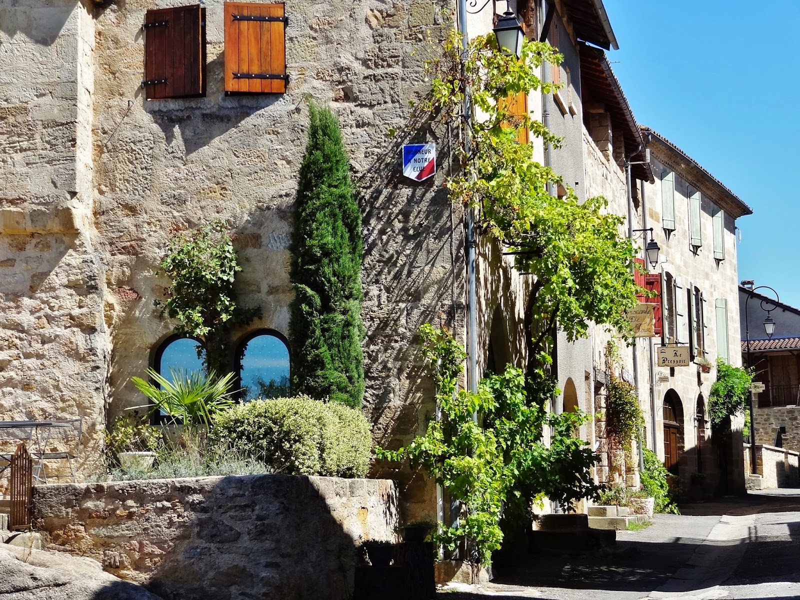 Llegamos a la hora de la siesta encontrándonos con la mayor de las tranquilidades. Tiene una larga calle que se desarrolla en la misma carretera de acceso. A un lado de la carretera hay algunas casas singulares, pero la parte más interesante esta en la parte más baja del pueblo, en la que encontramos una zona que fue fortificada y en la que destacan El pozo de Manganel, La Torre de Sagnes, defensiva y del siglo XIII, L’oustal Vielh, bella casa del siglo XVIII, La Torre del Reloj, La capilla Saint-Thomas, La Torre Redonda y el Lavadero de Murat.