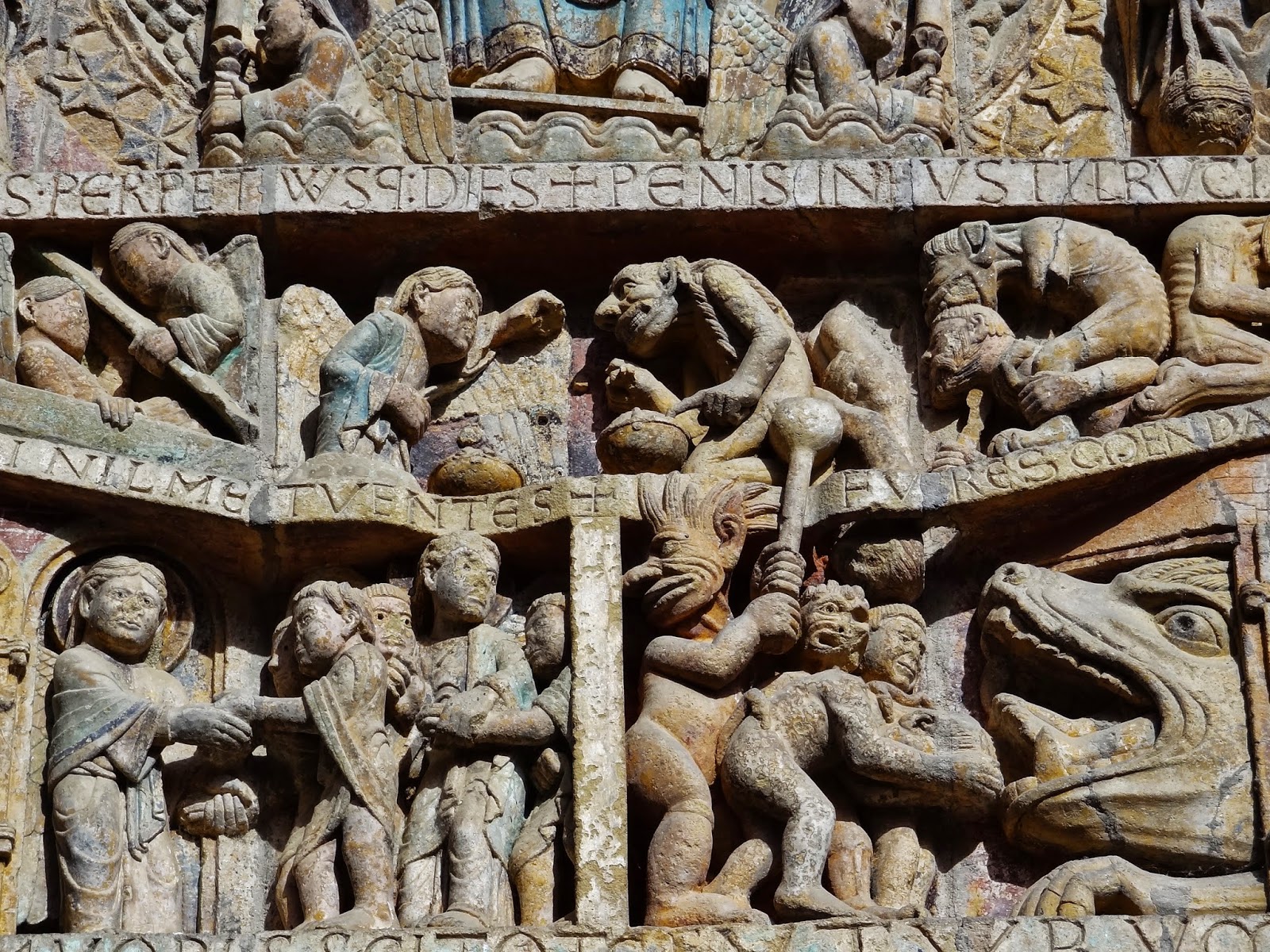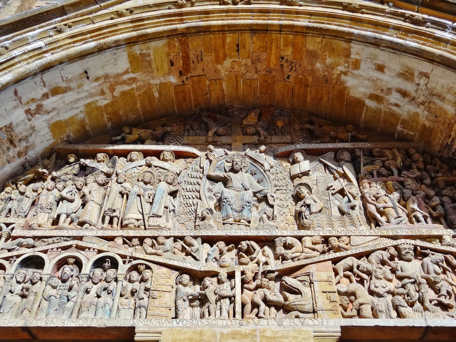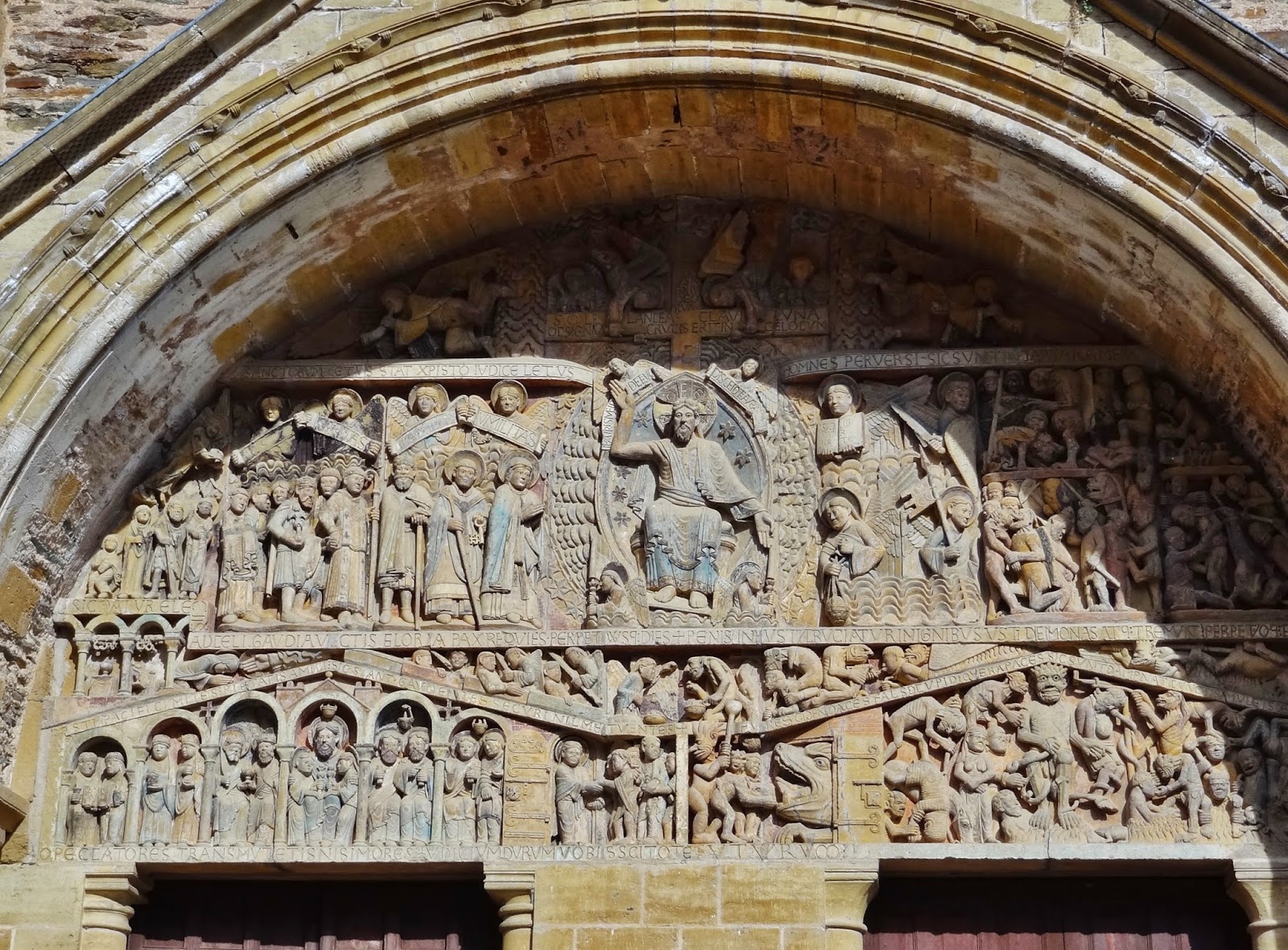 La abadía es considerada una de las obras maestras de la arquitectura románica del sur de Francia y destaca por su tímpano, cuenta también con un importante Tesoro de obras de arte del periodo Carolingio. Los vitrales actuales son obra de un autor contemporáneo.