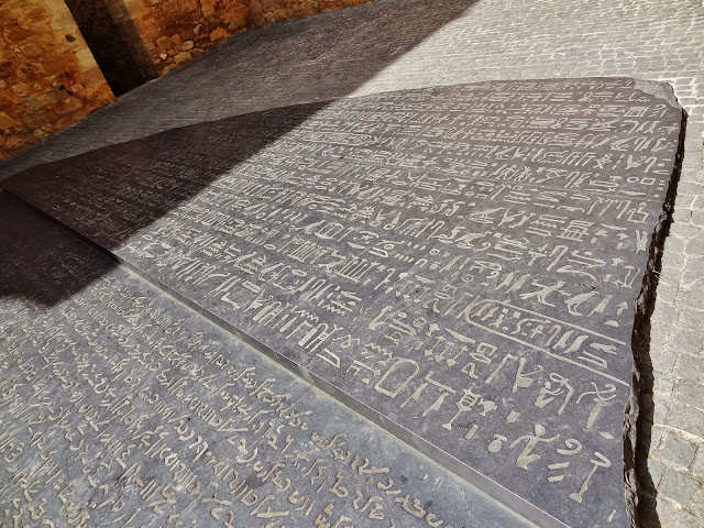 Pasamos también por la Plaza de las Escrituras ,plaza que rodeada de edificios góticos del siglo XIII, tiene en el suelo una reproducción de la Piedra Rosetta.