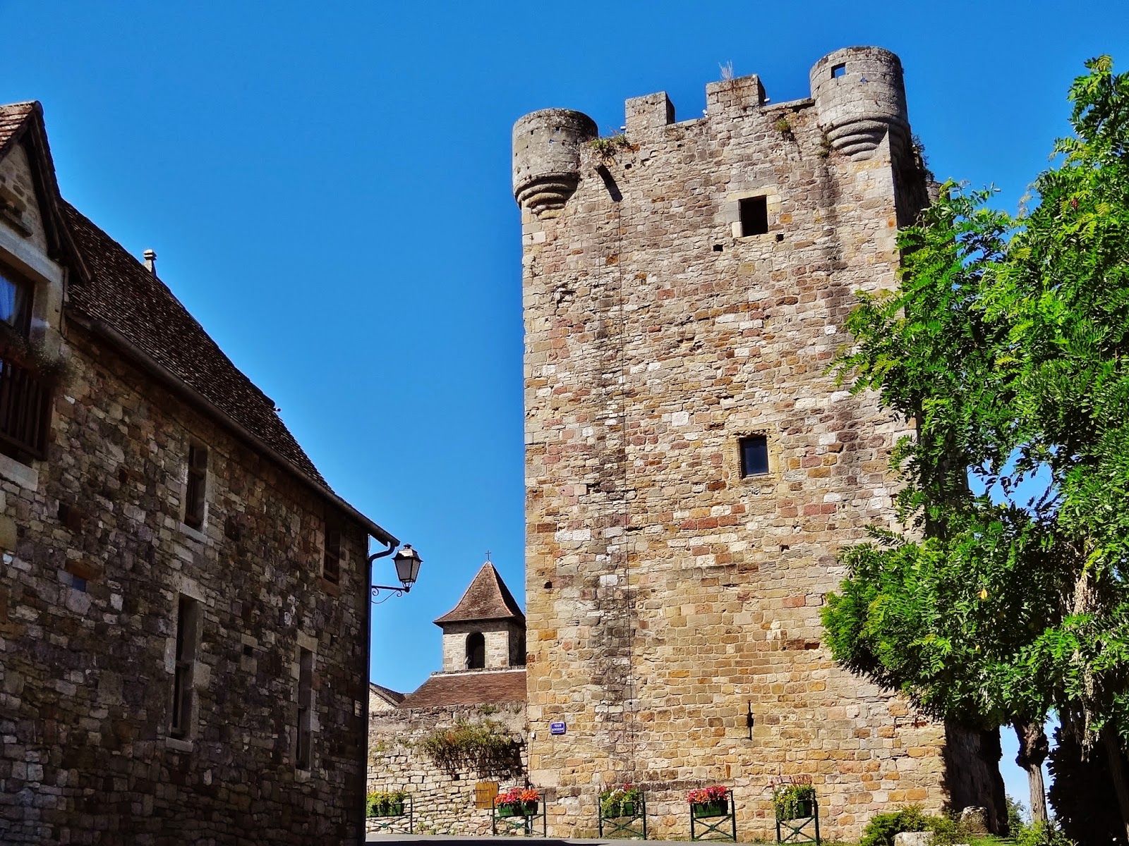 Pueblo incluido en la clasificación de los más bellos de Francia, edificado sobre un promontorio rocoso que domina un meandro del río Lot. Se trata de una población con mucha historia y que se afirma fue el último bastión galo antes de la invasión de Julio Cesar.