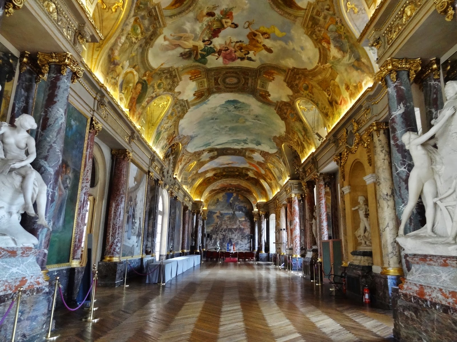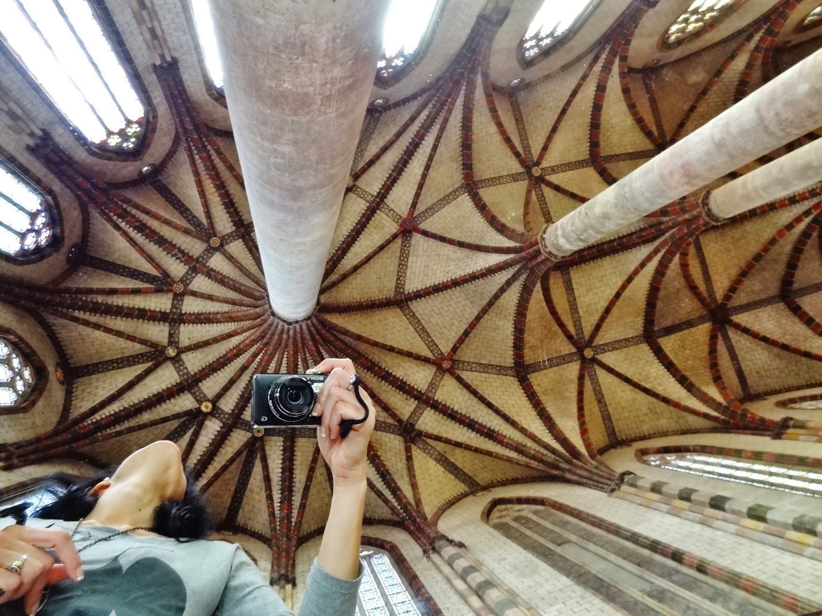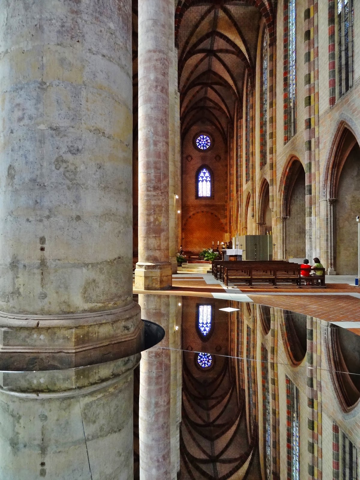 En el momento que nosotros hicimos la visita había unos espejos bajo esta columna que nos permitió tener una diferente y bella perspectiva de la misma y del resto del edificio.