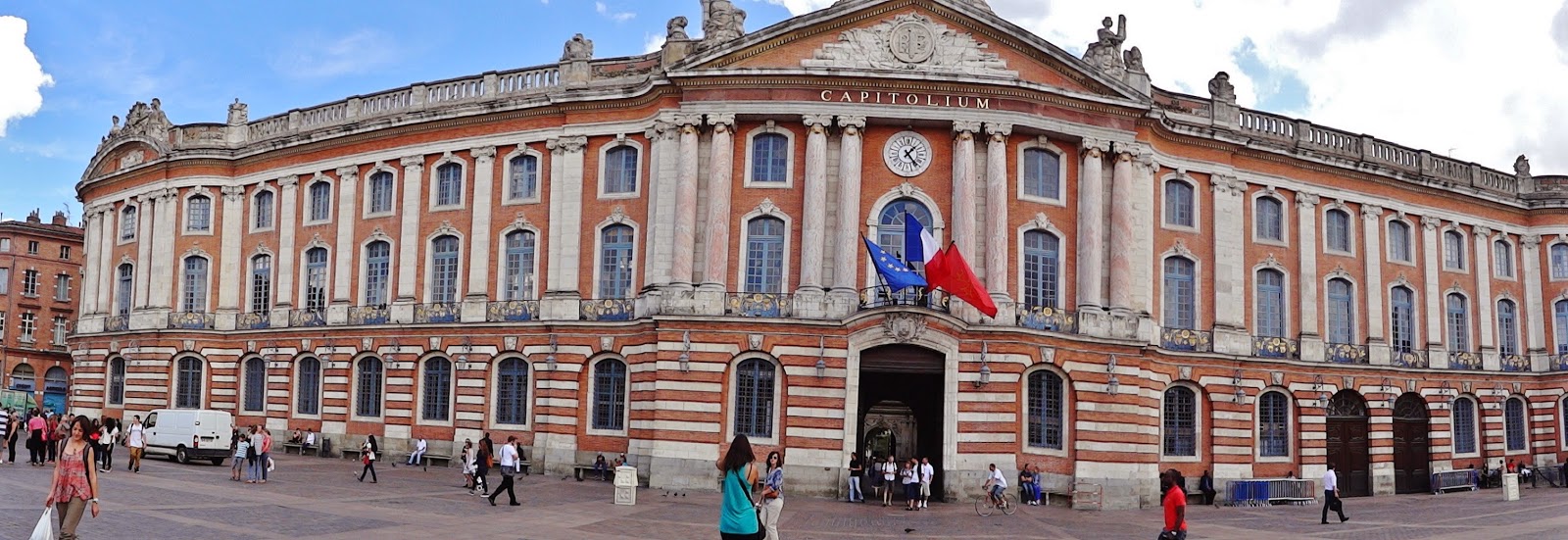 Fue terminado en su forma actual en 1759, con un frente largo de más de 128 metros. Ocho columnas representan los ocho Capitouls (consejeros municipales) que gobernaban la ciudad desde el siglo XII. Hoy en día, el Capitolio es aún Ayuntamiento Toulouse.