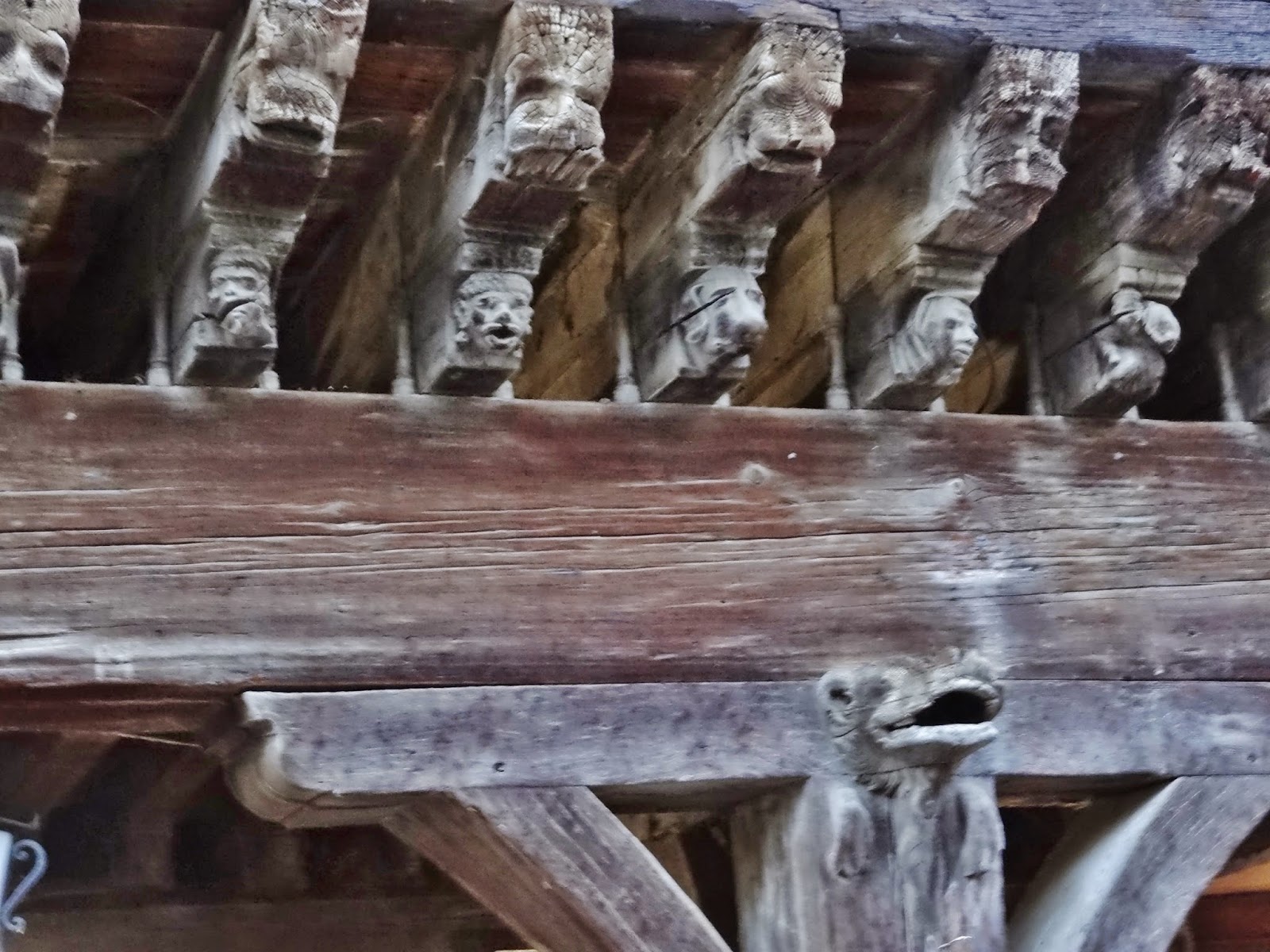 Gran parte de estos soportales de madera son del siglo XIII al XV, se conservan de forma maravillosa y están tallados, destacando los de la famosa Casa de los Cónsules en las que se aprecian las tallas de cabezas humanas y de monstruos, en una viga de más de 12 metros de larga y 60 cm de ancha en las que hay 104 tallas.