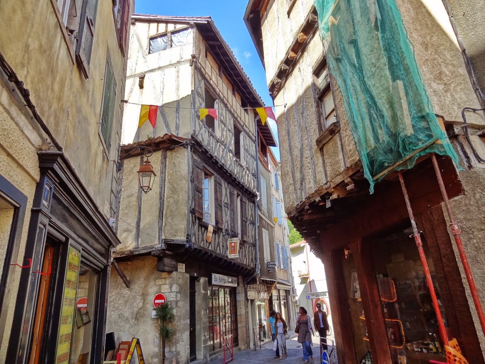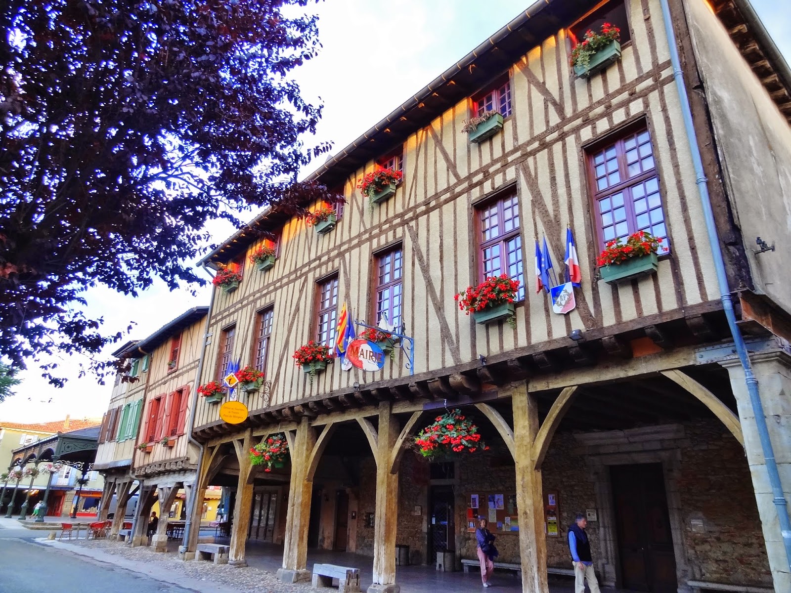 Se trata de una población que tuvo su auge en la época de las cruzadas cátaras o albigenses y quizás en parte por esta evocación histórica, además de por sus hermosas calles de coloridas casas entramadas en madera, de los soportales y porches de la Plaza des Couverts.