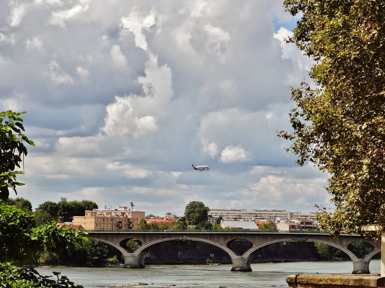 Estando allí tirando unas fotos vimos surcar los aires uno de esos enormes aviones que se diseñan y desarrollan en Toulouse, ciudad que es centro europeo de investigación, desarrollo y fabricación de los aviones AIRBUS, cuyas instalaciones se pueden visitar.
