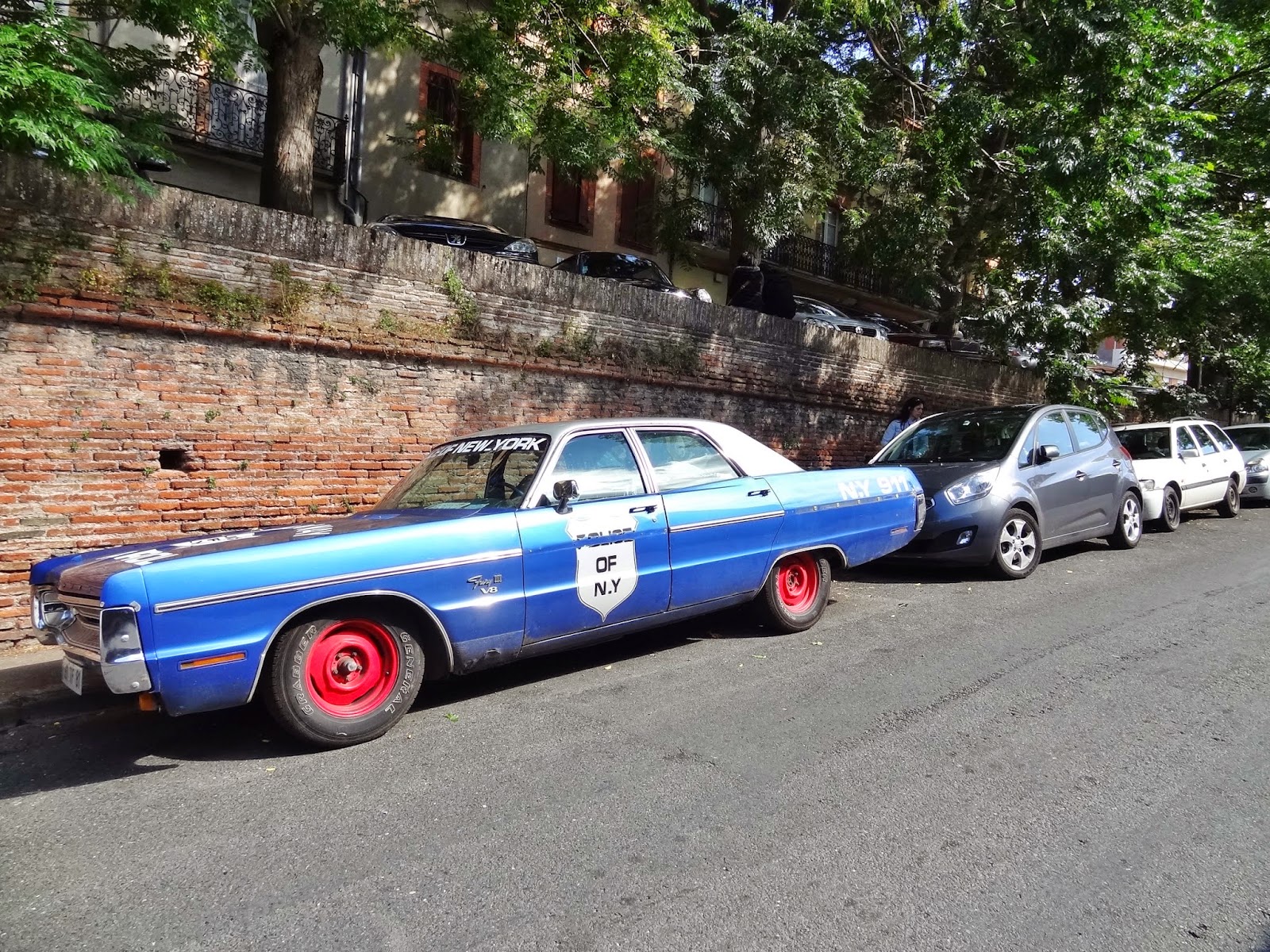 Al volver al coche para emprender marcha camino de Toulouse, nos encontramos estacionado al lado de nuestro utilitario un mítico Plymouth americano.