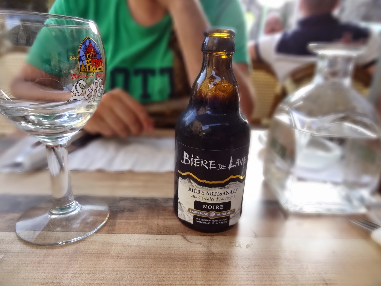 De vuelta a Salers cenamos en un restaurante terraza , situado en la plaza y de cuyo nombre no recuerdo pero en el que tomamos unas ensaladas, tartines de pan, queso local y unas ricas pizzas cas erísimas, acompañadas de cerveza local…..como no con nombre volcánico evocador. Y de fondo escuchamos la actuación de un grupo de Goospel que en plenas fiestas actuaban en la preciosa plaza Tyssandier-d’Escous.